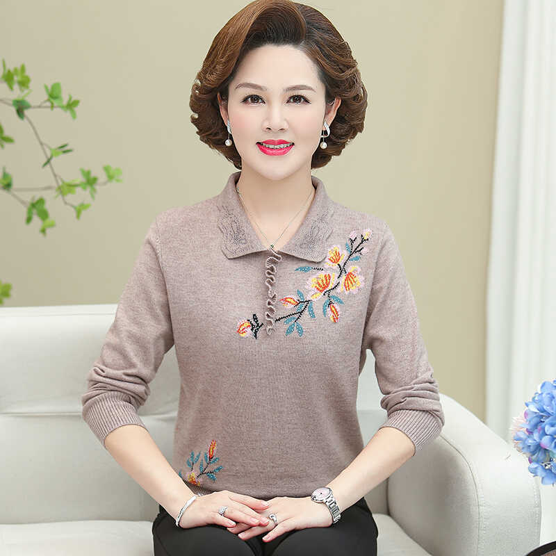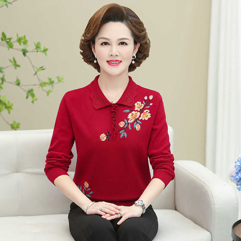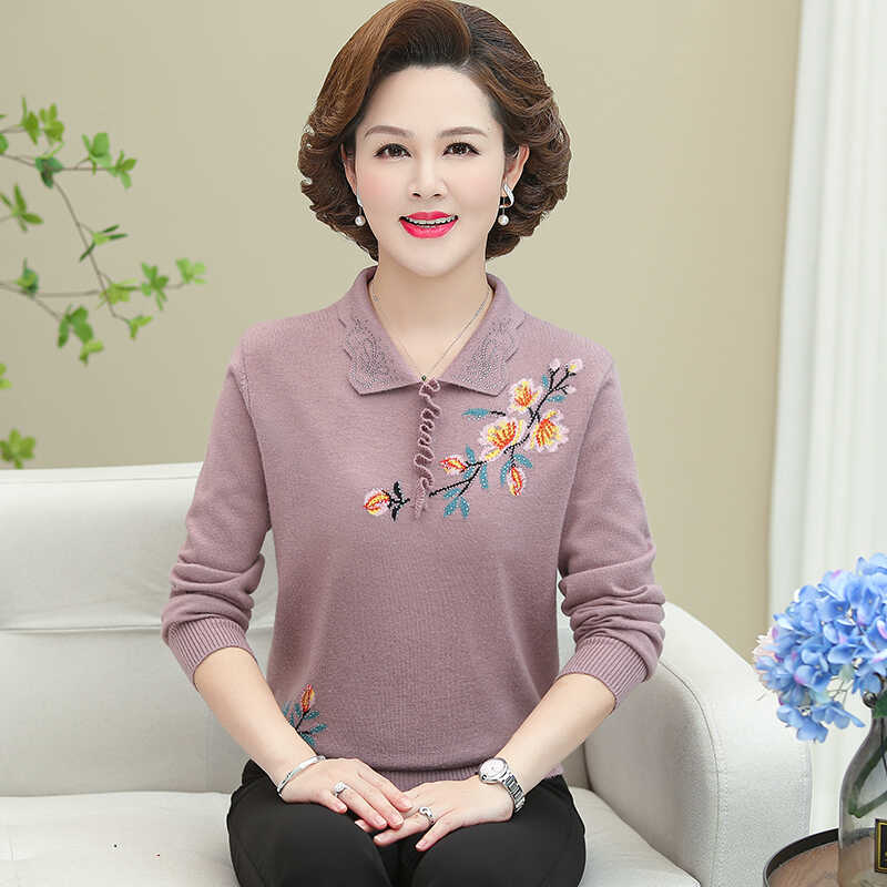 中年女装翻领毛衣2024新款中老年妈妈装大码套头针织衫上衣打底衫