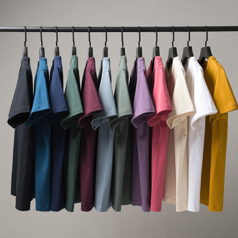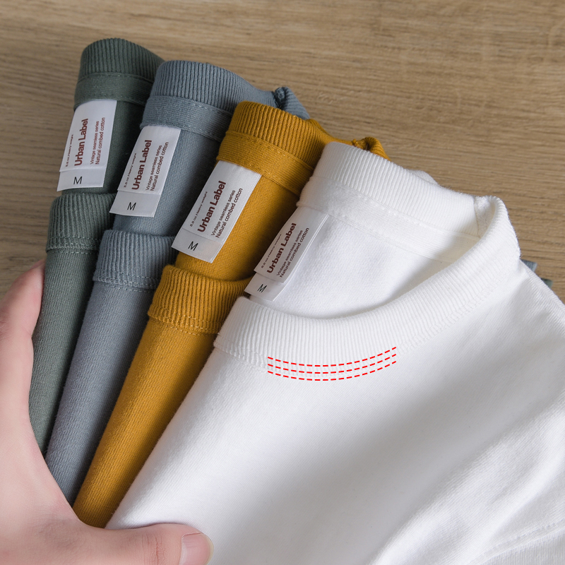 三本针320g重磅短袖纯棉T恤男