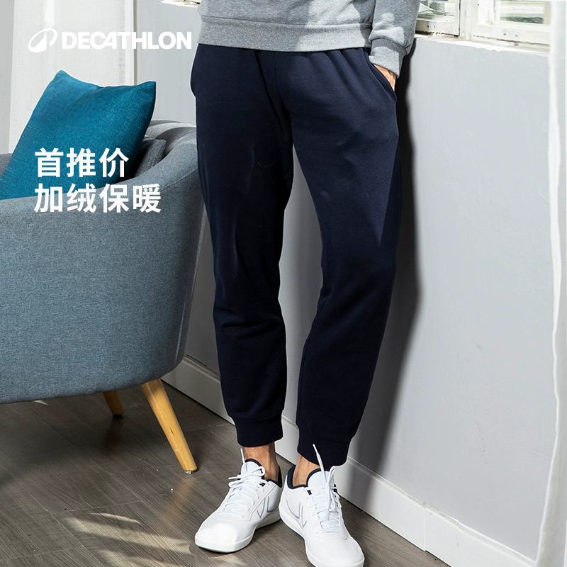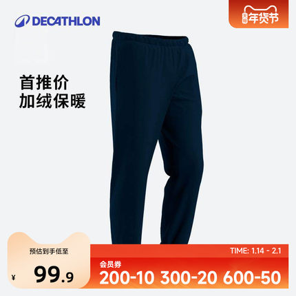 迪卡侬加绒运动裤男冬季卫裤针织宽松防寒裤束脚休闲抓绒裤子SAP1