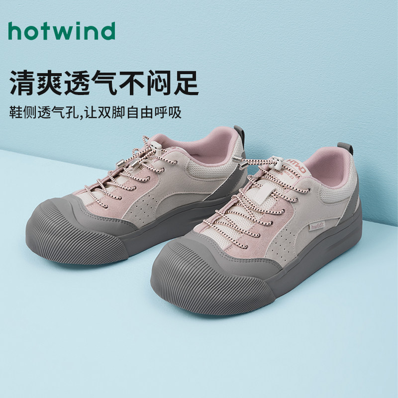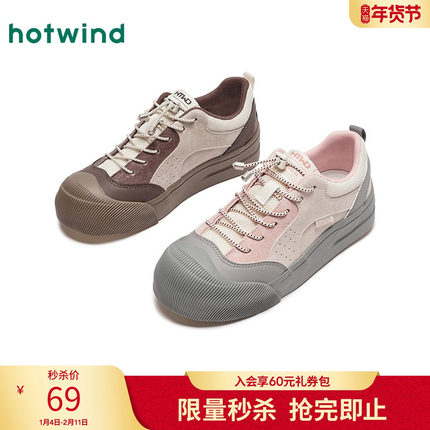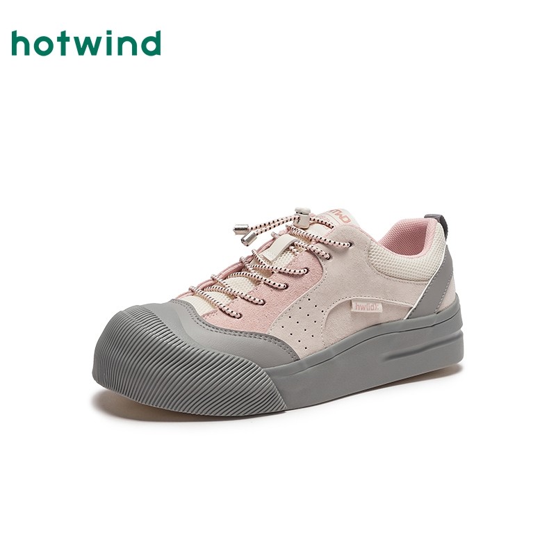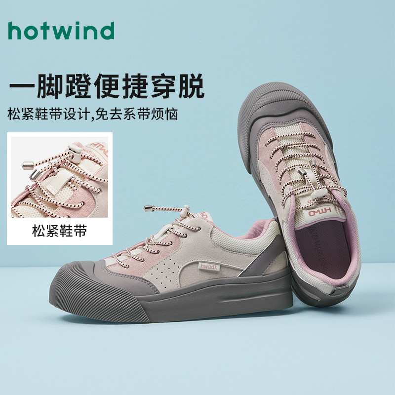 热风秋季新款女士时尚圆头系带休闲鞋多巴胺甜美复古板鞋女