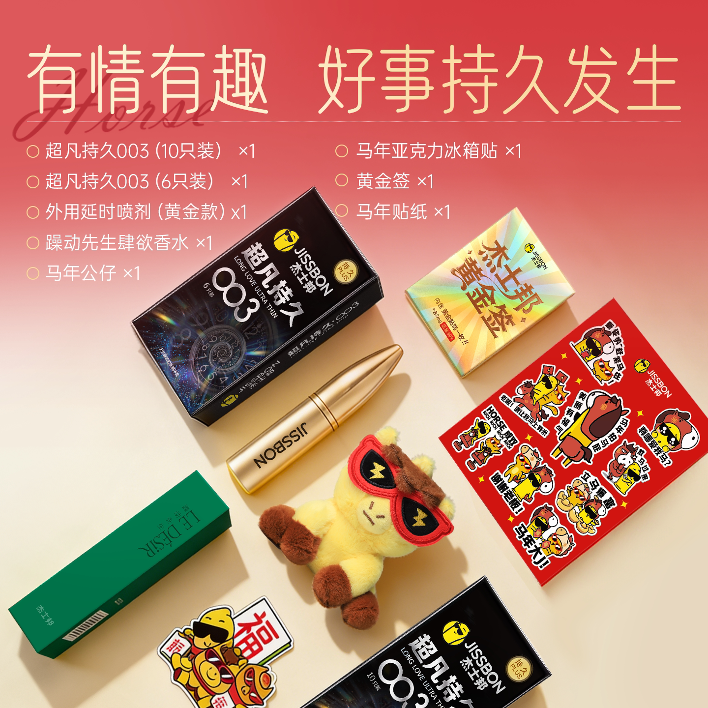 杰士邦新年礼盒避孕套003超凡持久超薄男用安全延时裸入byt旗舰店
