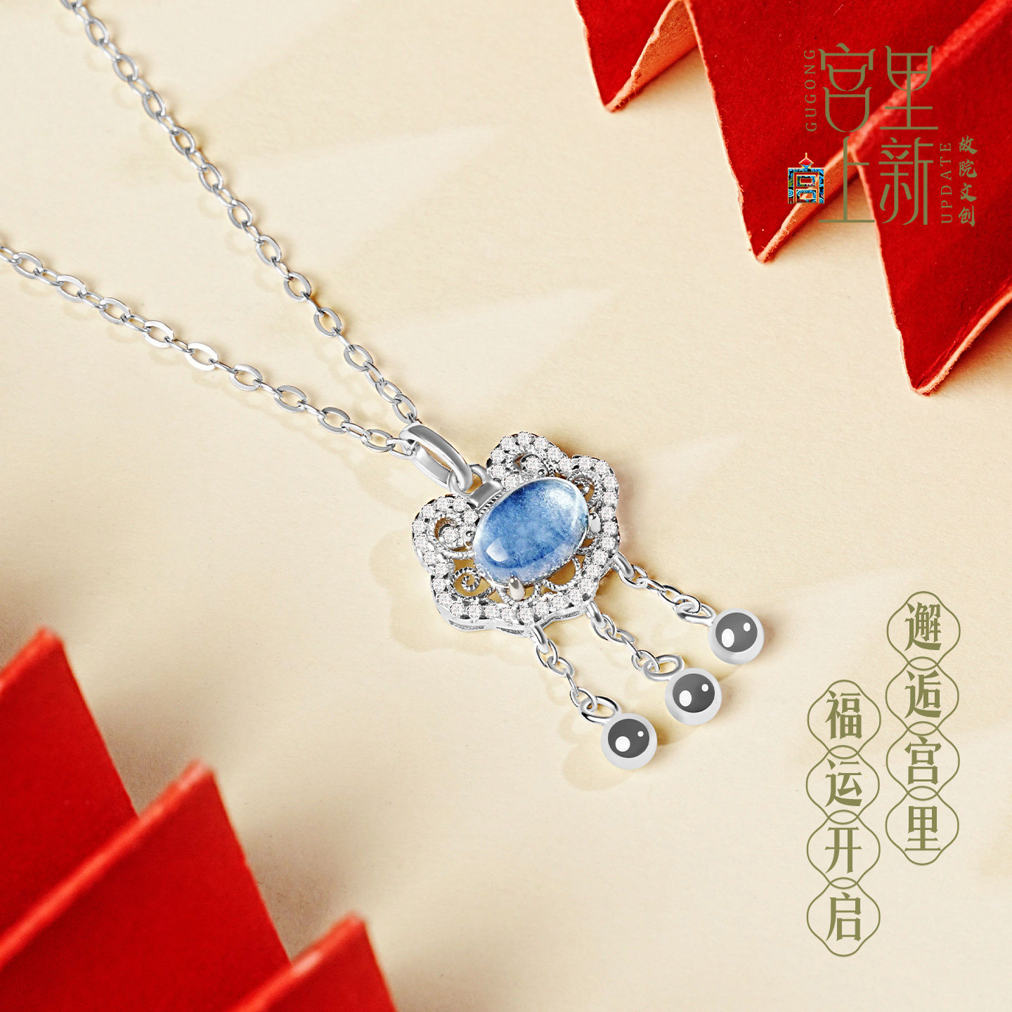 宫里上新海蓝宝吊坠平安锁项链女款纯银长命锁蓝色宝石生日礼物