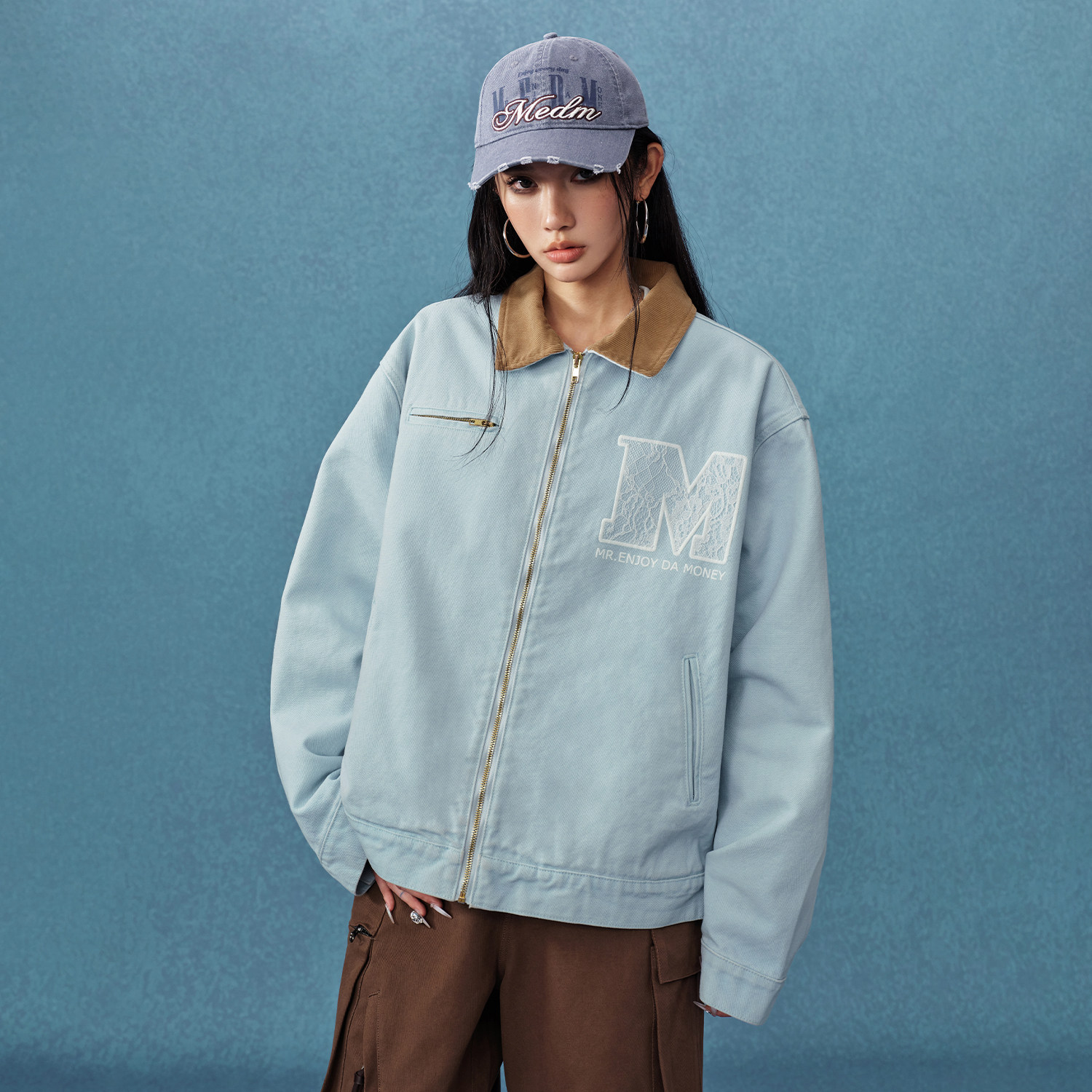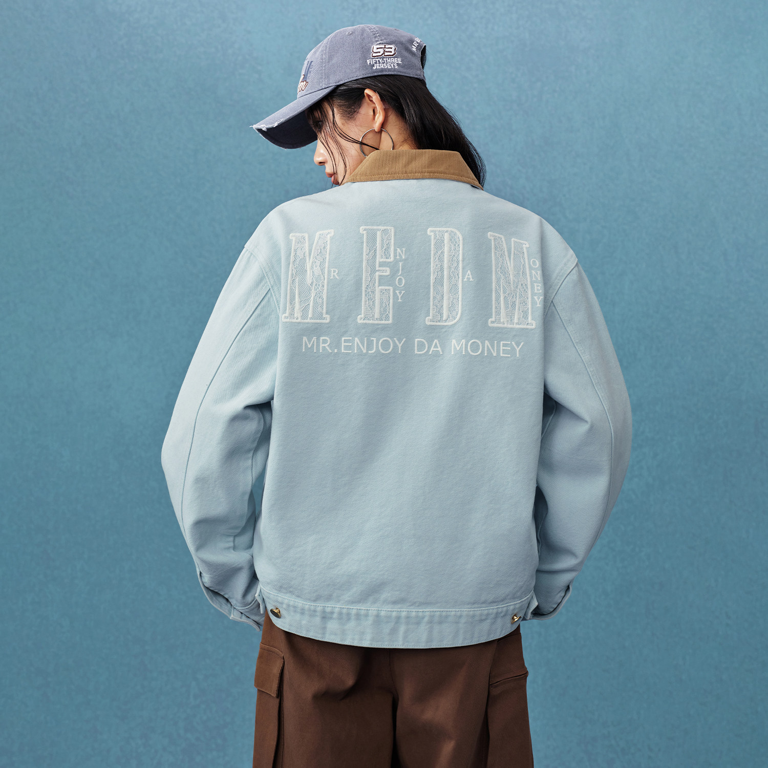 MEDM 蕾丝底特律休闲翻领夹克男女情侣潮流美式复古宽松外套春秋