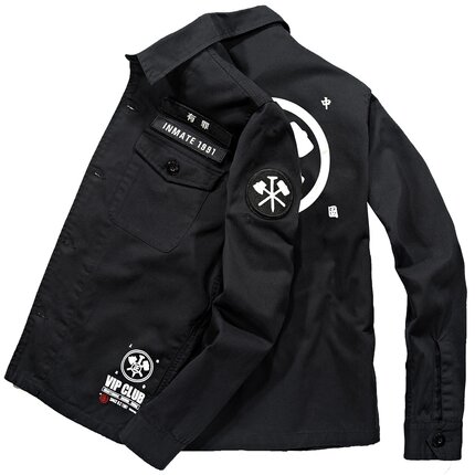 VIP复古工装外套男春秋小众设计国潮重磅刺绣翻领休闲衬衫式夹克