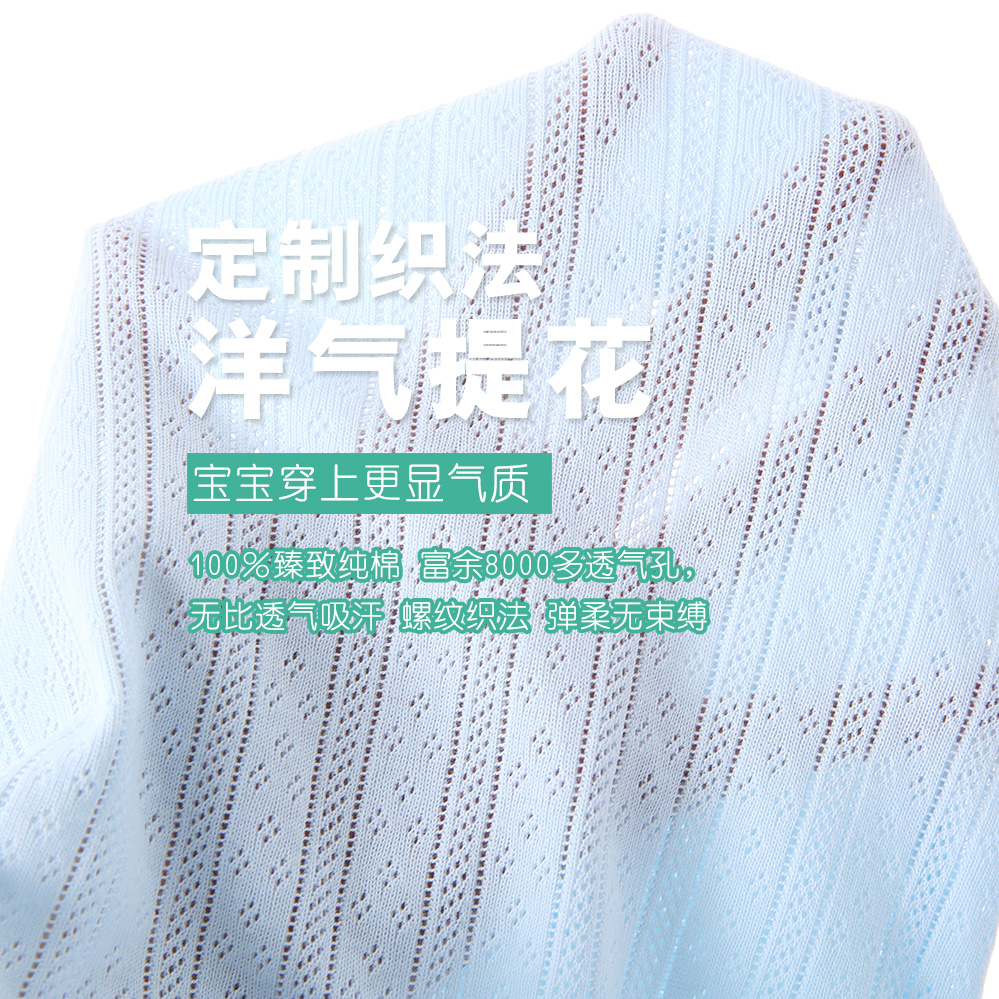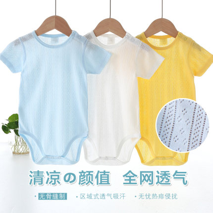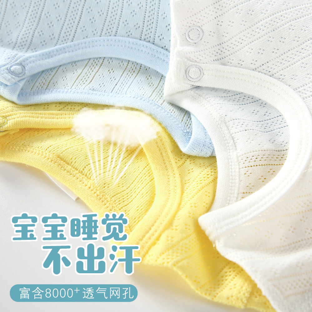宝宝短袖三角哈衣纯棉网眼夏季空调服婴儿童薄款无袖连体包屁睡衣