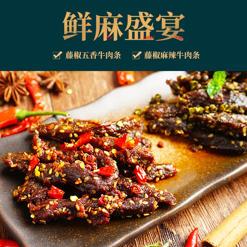 藤椒牛肉条麻辣五香牛肉干川香熟食即食牛肉特产零食小吃本宫饿了