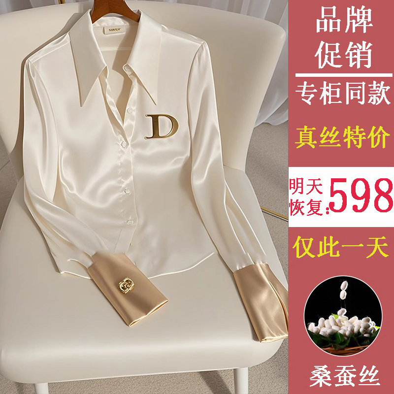 大牌高端真丝独特上衣女士秋季时尚洋气别致高级感冷淡系白色衬衫