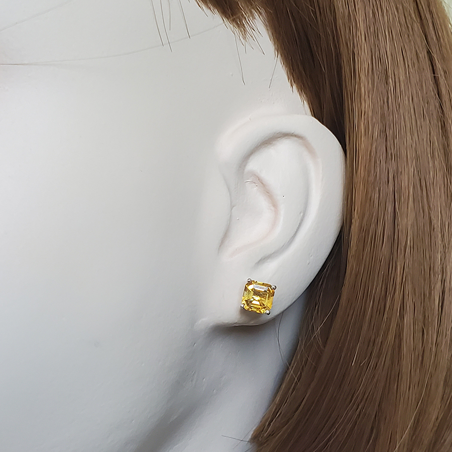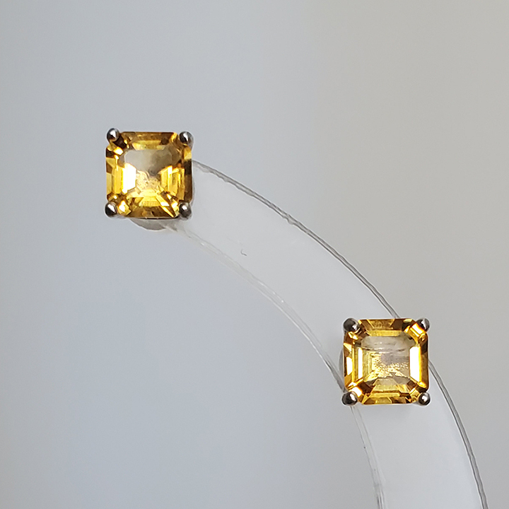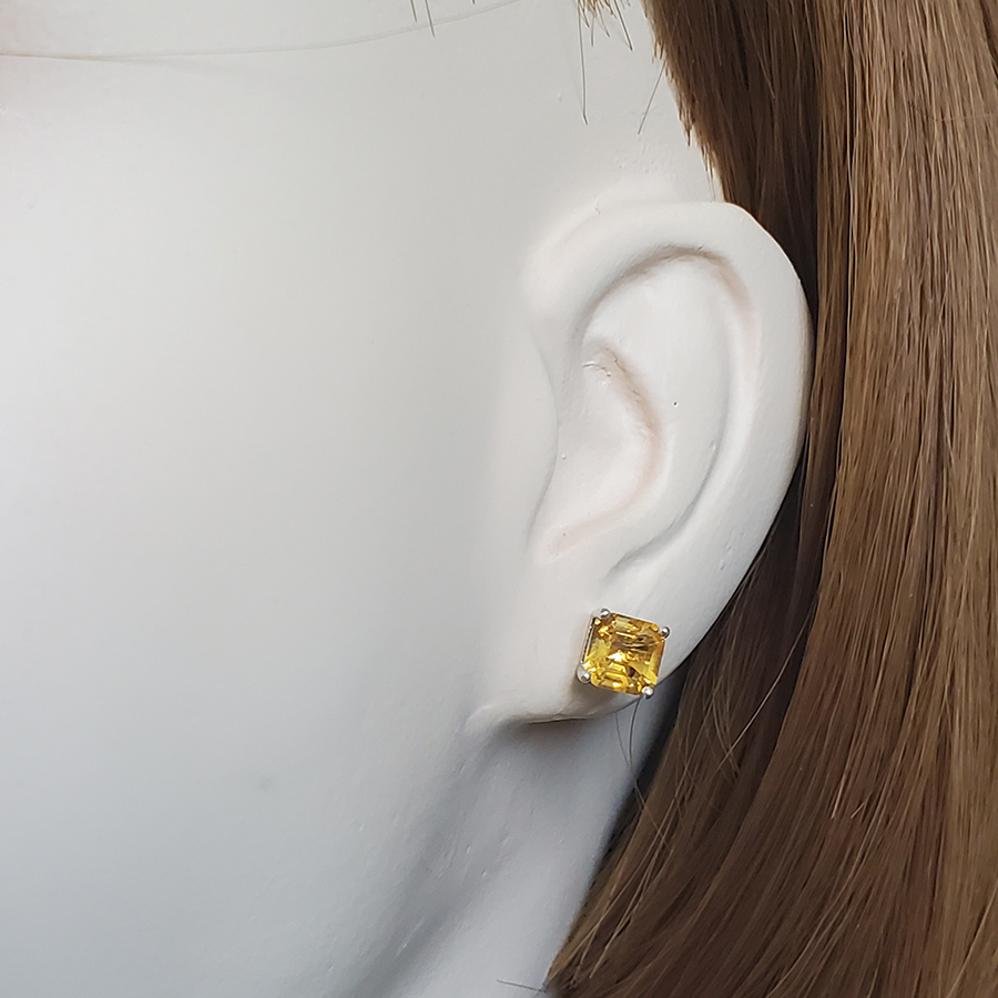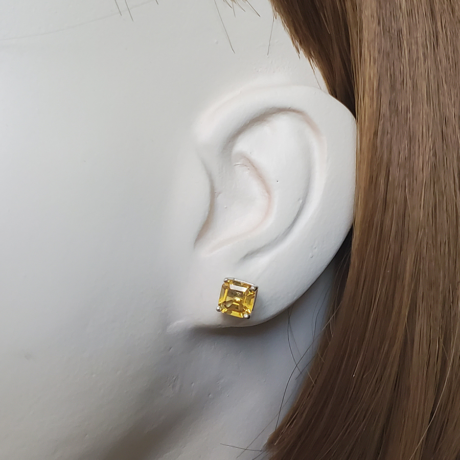 6毫米天然黄水晶 帅气阿斯切琢形 S925纯银耳钉 耳环