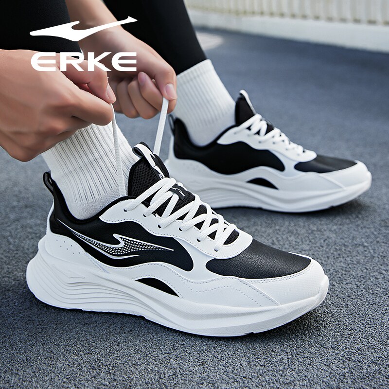 鸿星尔克运动鞋男鞋2025秋季新款红星官方防泼水皮面休闲跑步鞋子