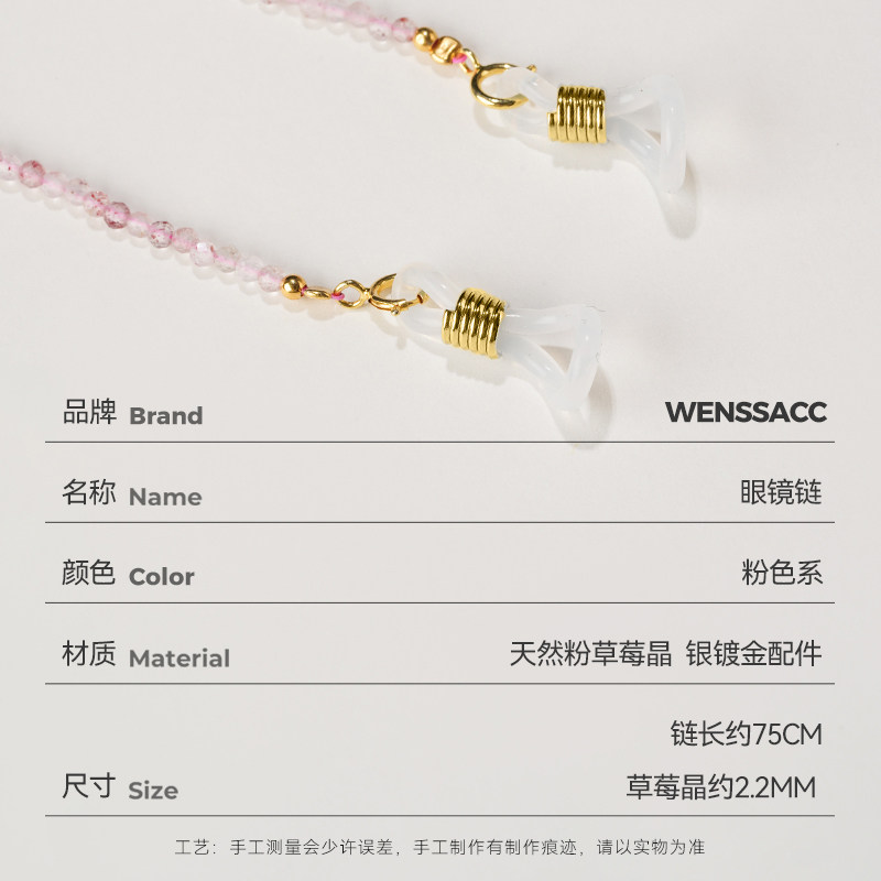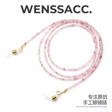 WENSSACC手工眼镜链天然粉草莓晶极细多功能口罩耳机墨镜防丢挂链
