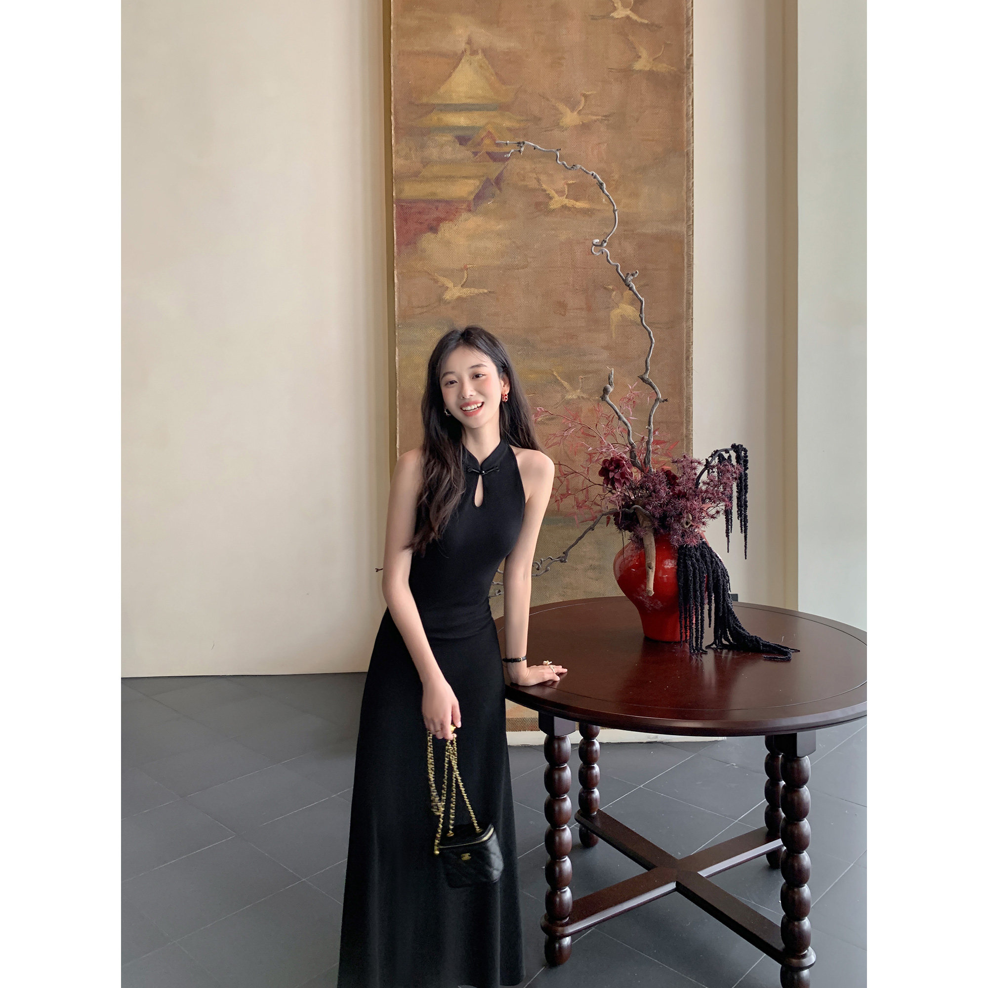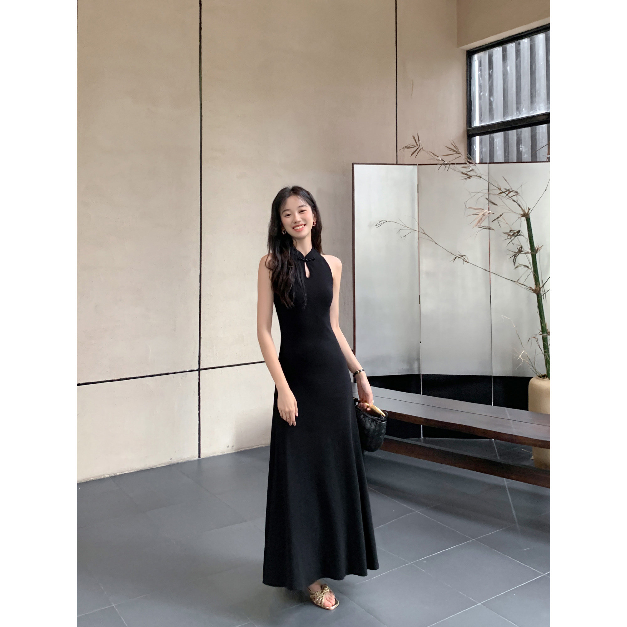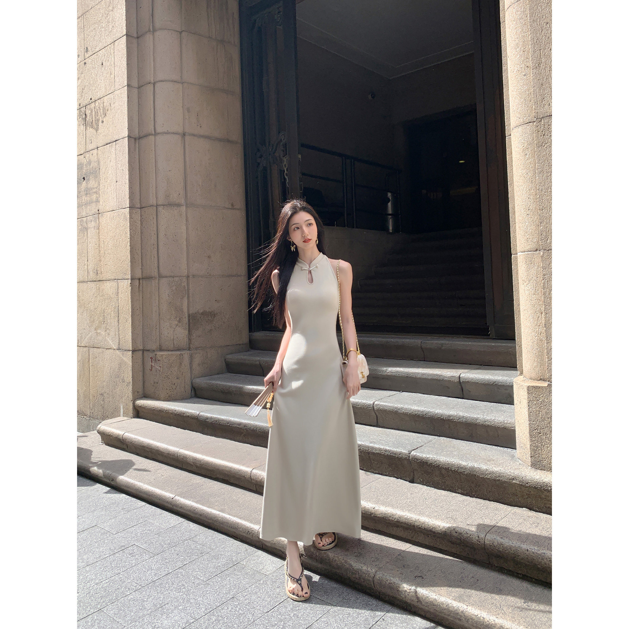 新中式立领盘扣无袖连衣裙