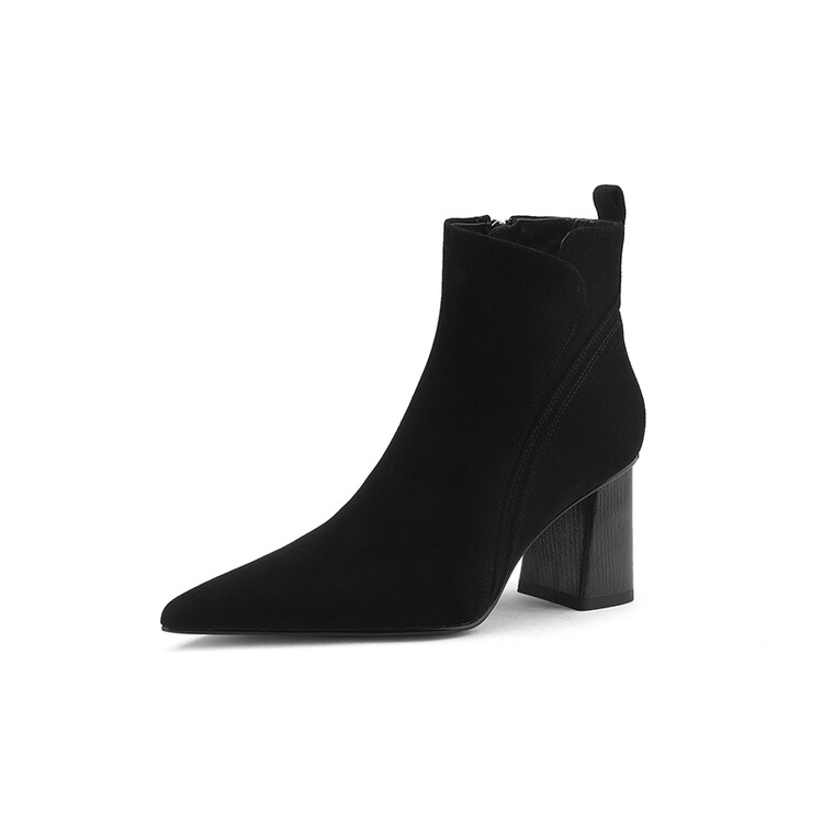 复古时装靴粗跟羊反绒高跟鞋短靴
