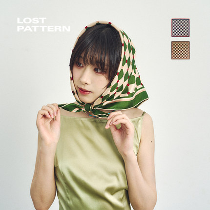 双成记花花魔方格原创设计真丝桑蚕丝丝巾中方巾女搭配衬衫送礼