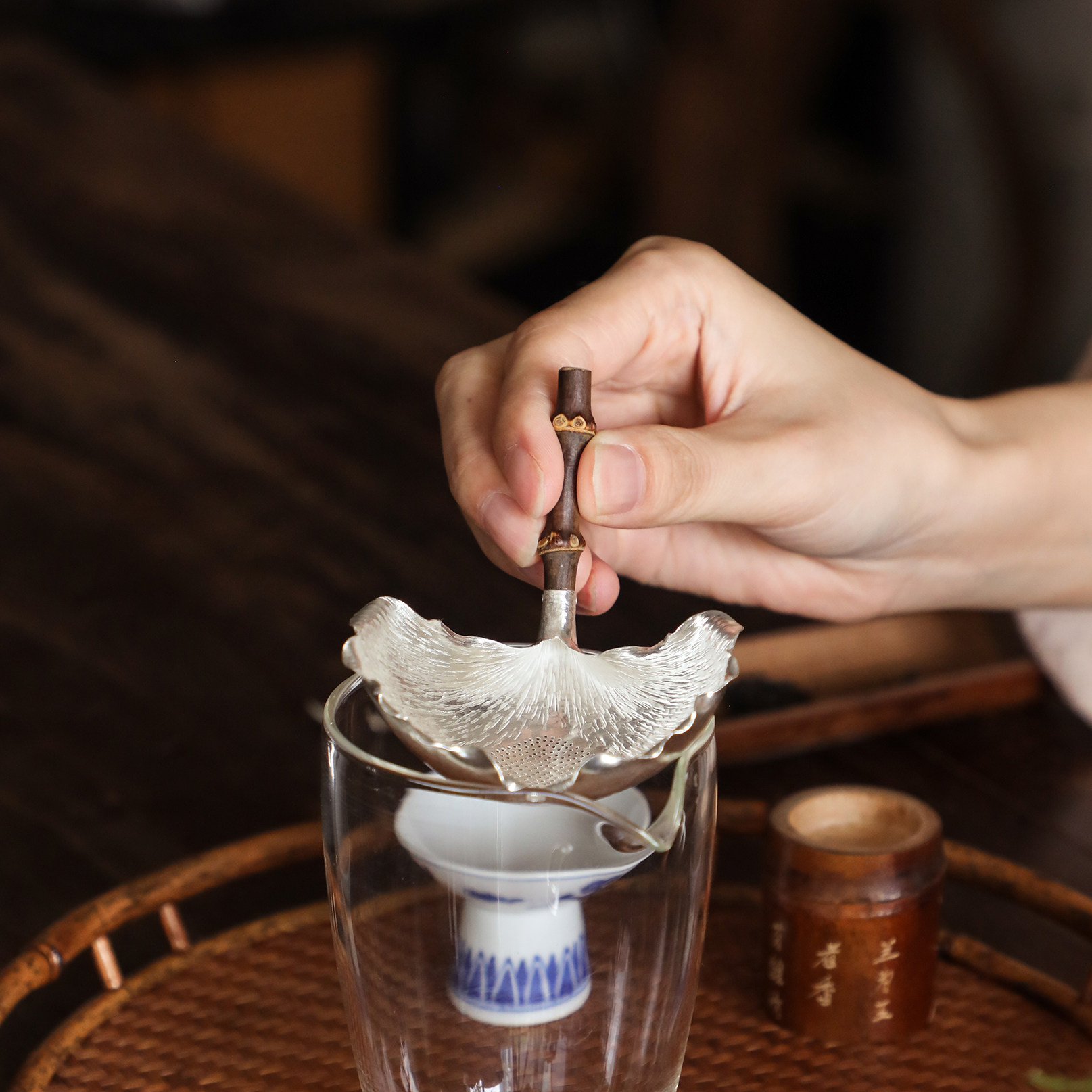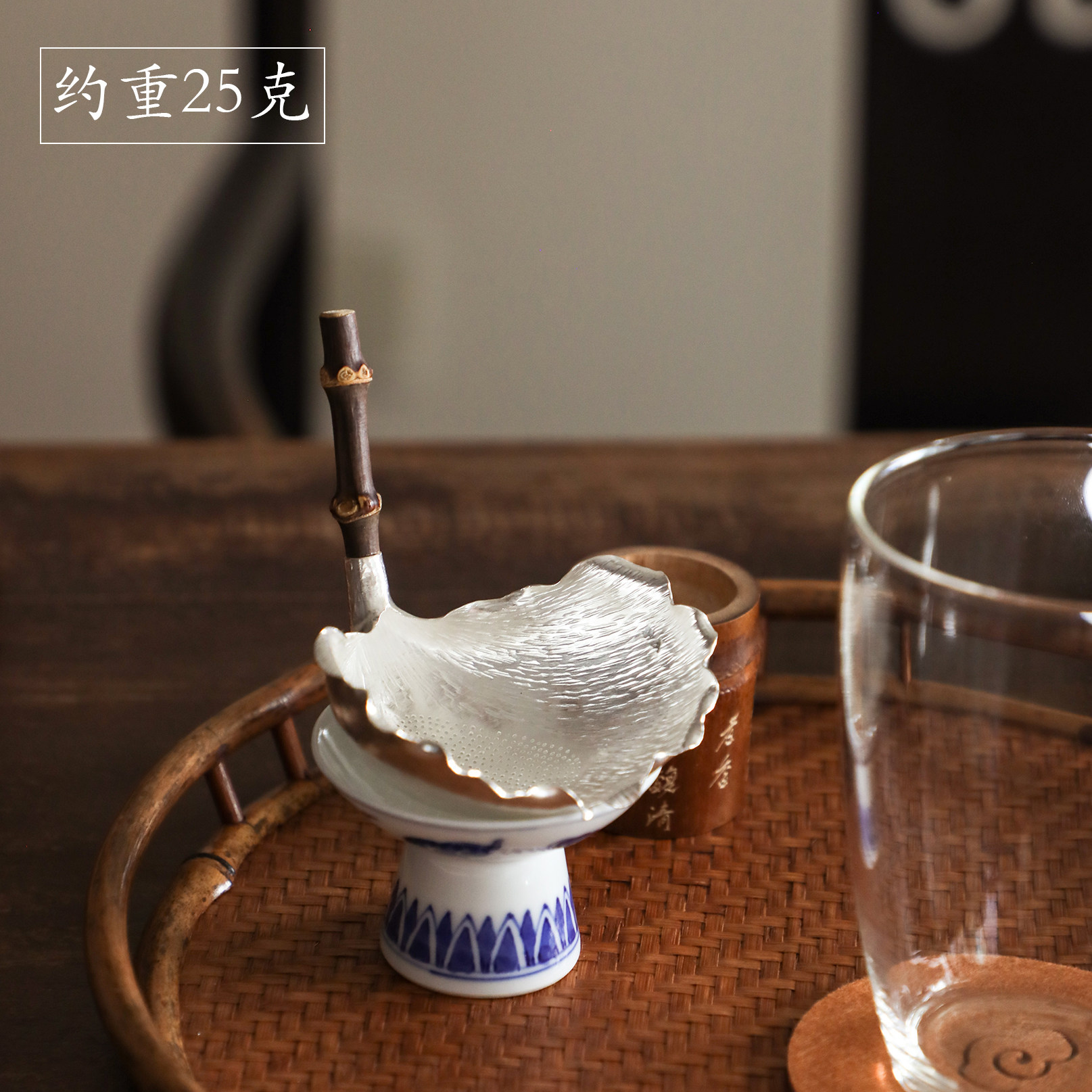 纯银时代 银杏茶漏足银999纯手工茶滤防烫特别精致送礼赠12件套