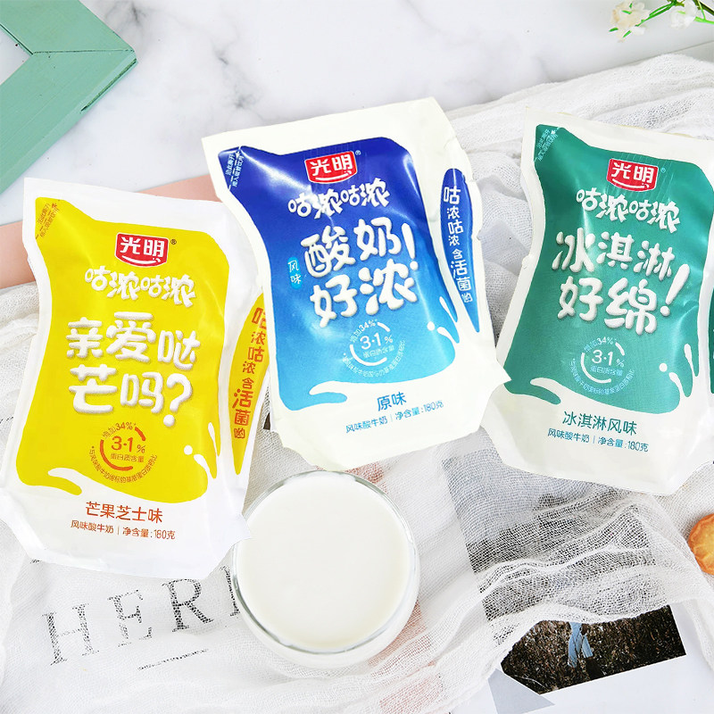 光明咕浓咕浓浓缩酸奶冰淇淋味茉莉白桃原味风味发酵乳180g*10袋