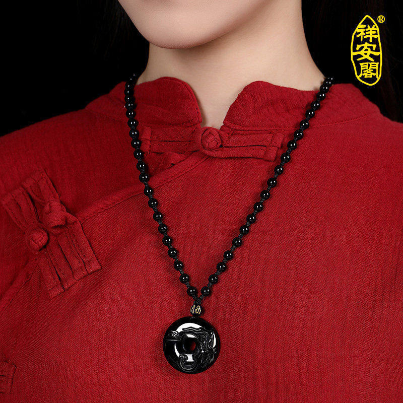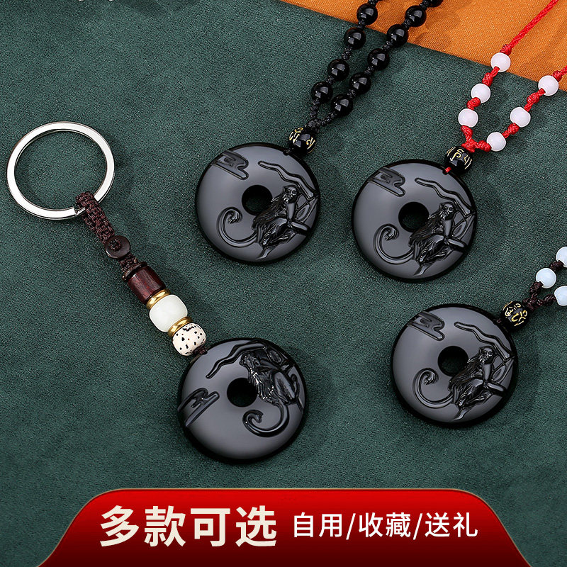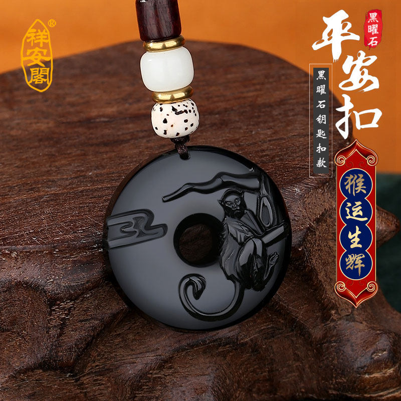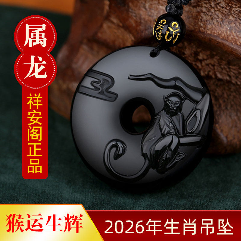 祥安阁猴运生辉吊坠黑曜石属龙人2026年吉祥物男女生肖龙佩戴挂件