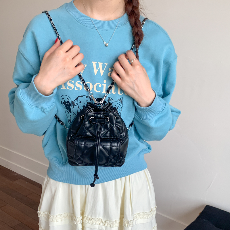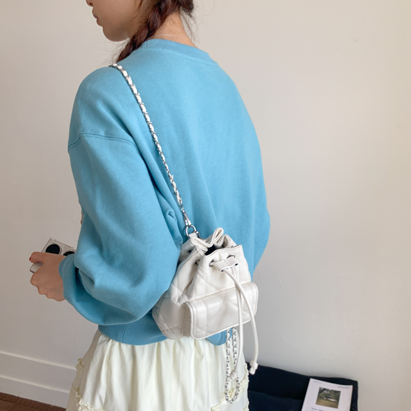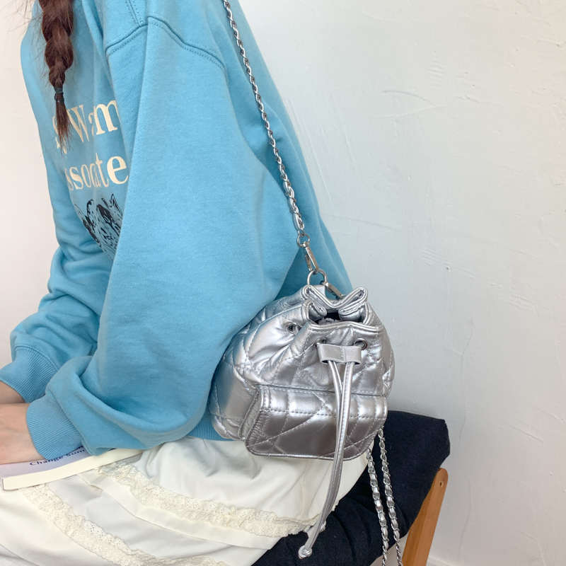 高颜值精致迷你链条背包女2025新款夏季菱格可爱水桶包游玩双肩包