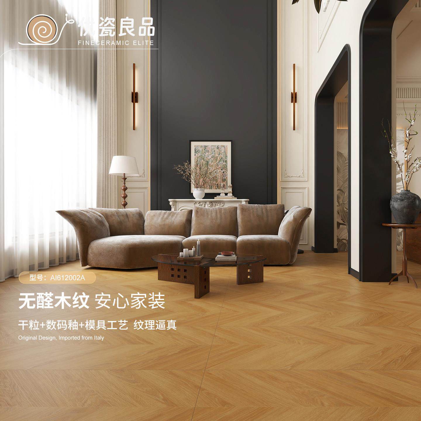 法式复古风鱼骨木纹瓷砖600x1200卧室客厅全瓷原木色仿实木地板砖