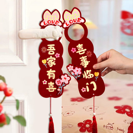 婚房布置结婚喜字门把手挂件套装女方卧室男方新房装饰用品大全
