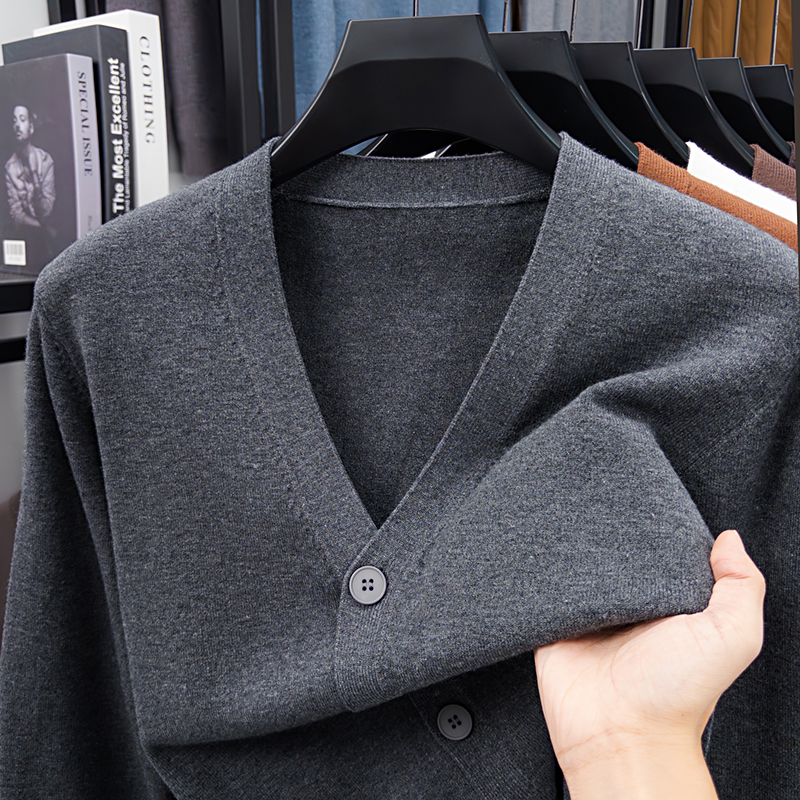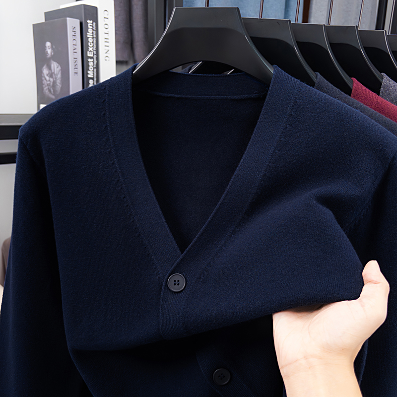 利郎羊绒开衫男士中年爸爸装秋冬装长袖保暖针织保暖羊毛衣外套男