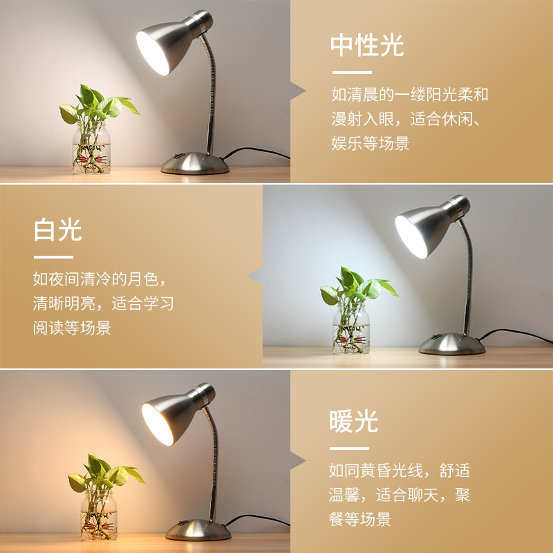 护眼led台灯学习书桌 宿舍插电学生儿童台式金属简约办公阅读调光