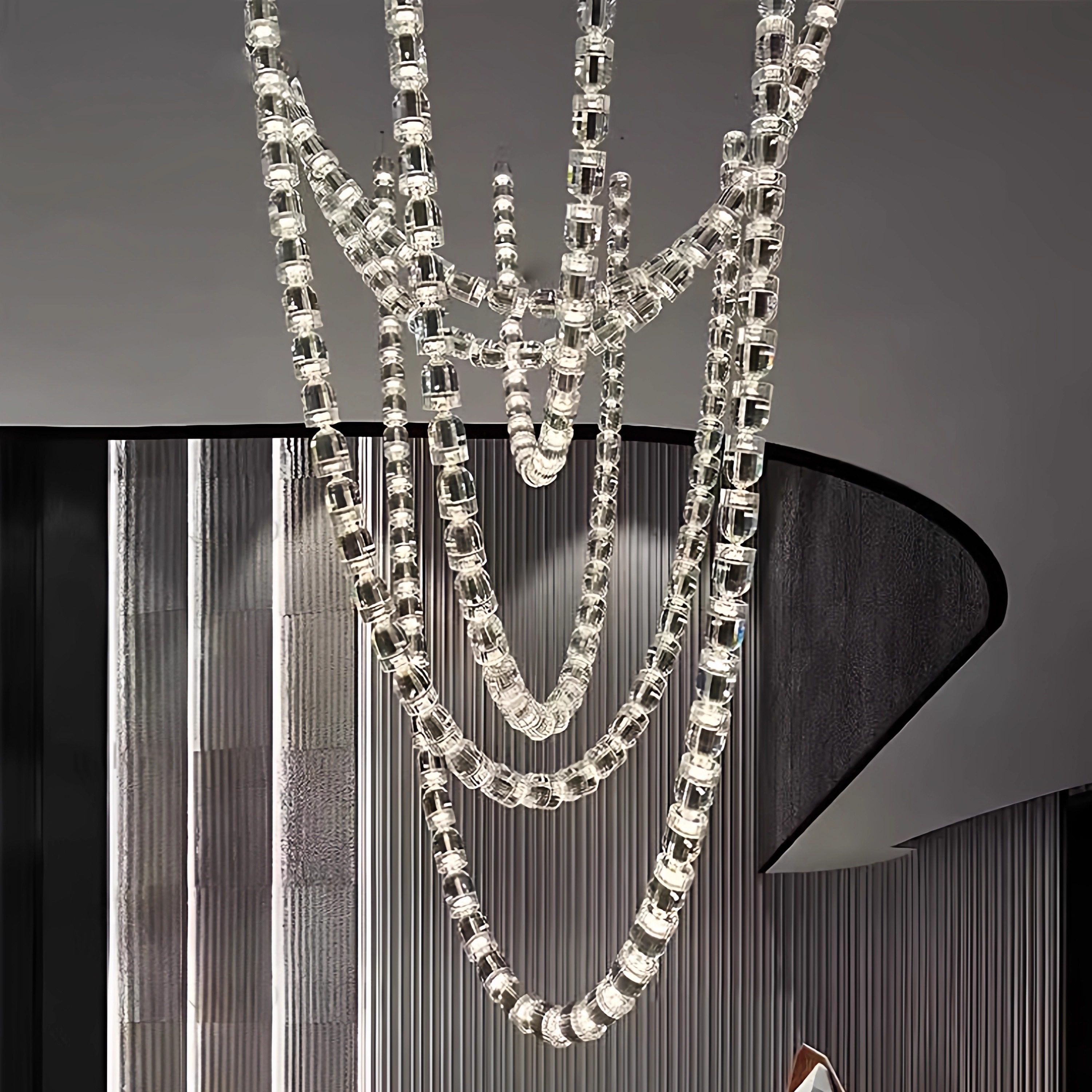 设计师项链水晶酒杯灯现代别墅轻奢loft公寓复式楼挑空客厅吊灯具