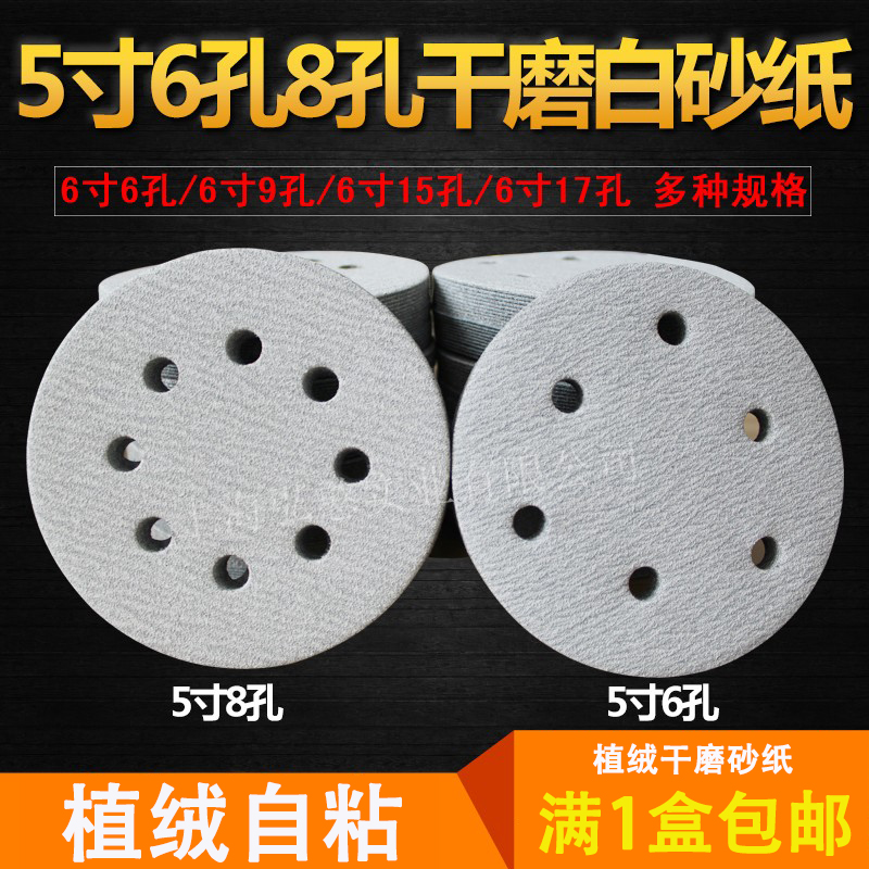 干磨砂纸5寸8孔牧田机圆形植绒砂纸片气磨机自粘圆盘打磨抛光沙纸