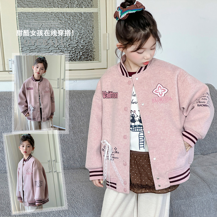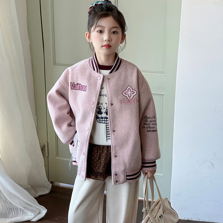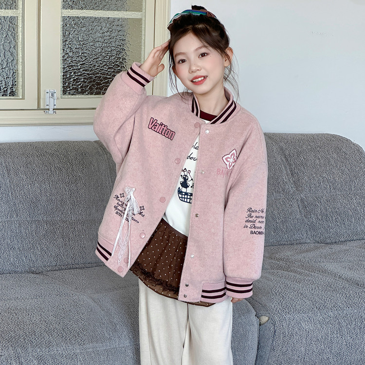 加棉服百搭棒球服外套棉牛仔布无弹刺绣秋冬女童休闲夹克外套保暖