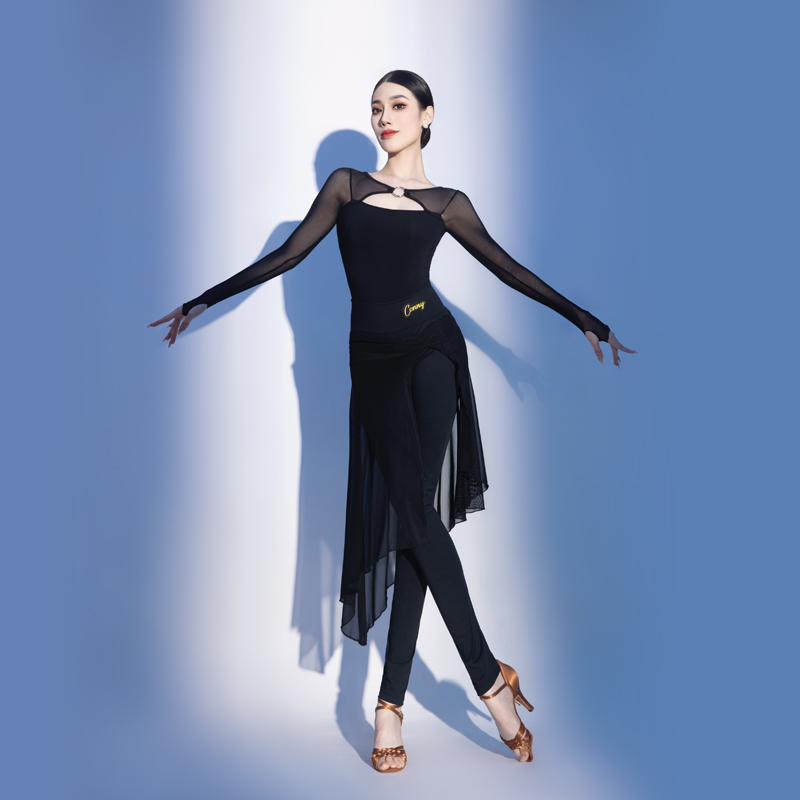 秋冬新款拉丁舞服装摩登舞连体上衣女成人走秀练功服舞蹈服形体服