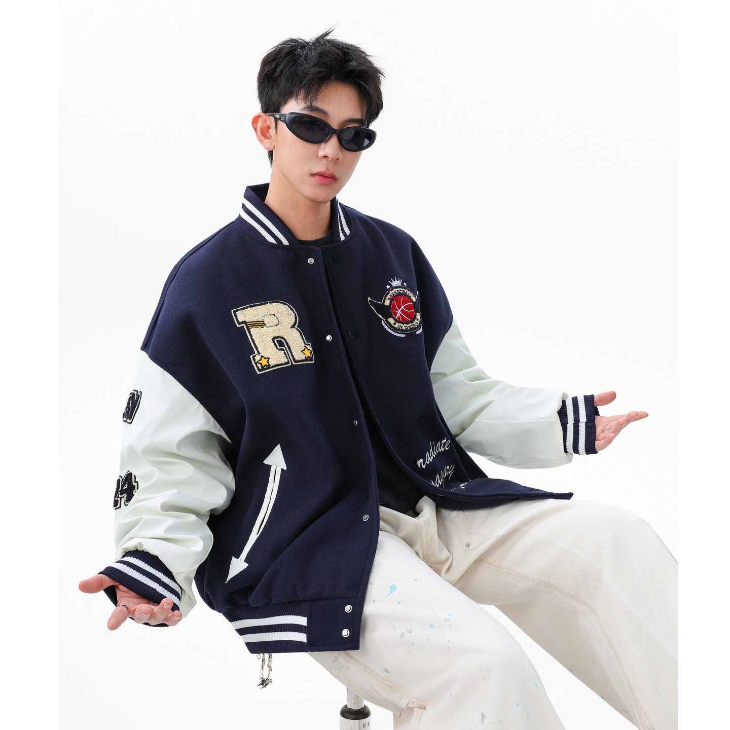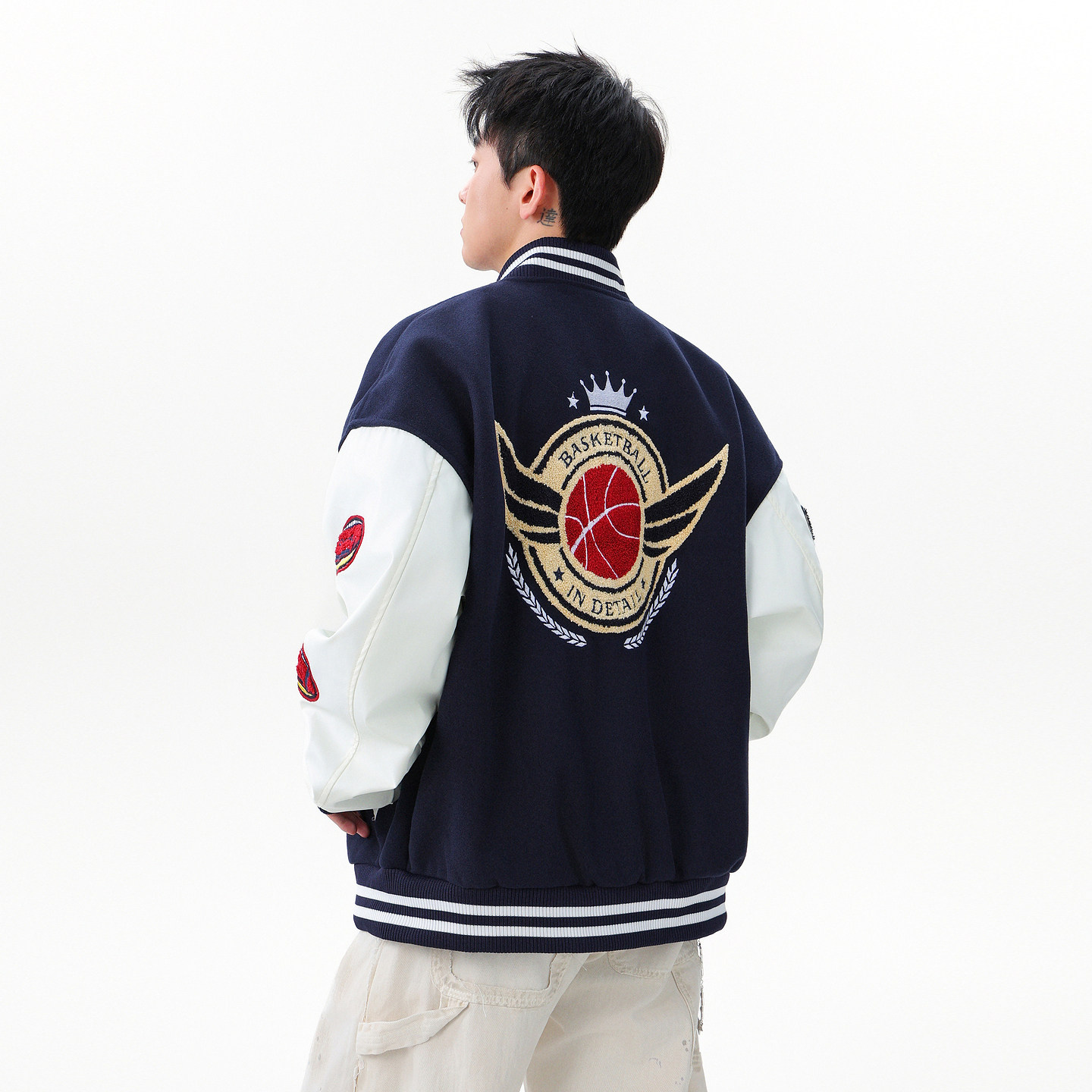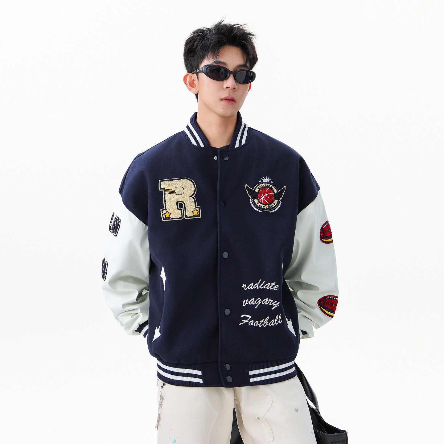潮牌美式毛巾绣拼接棒球服外套男