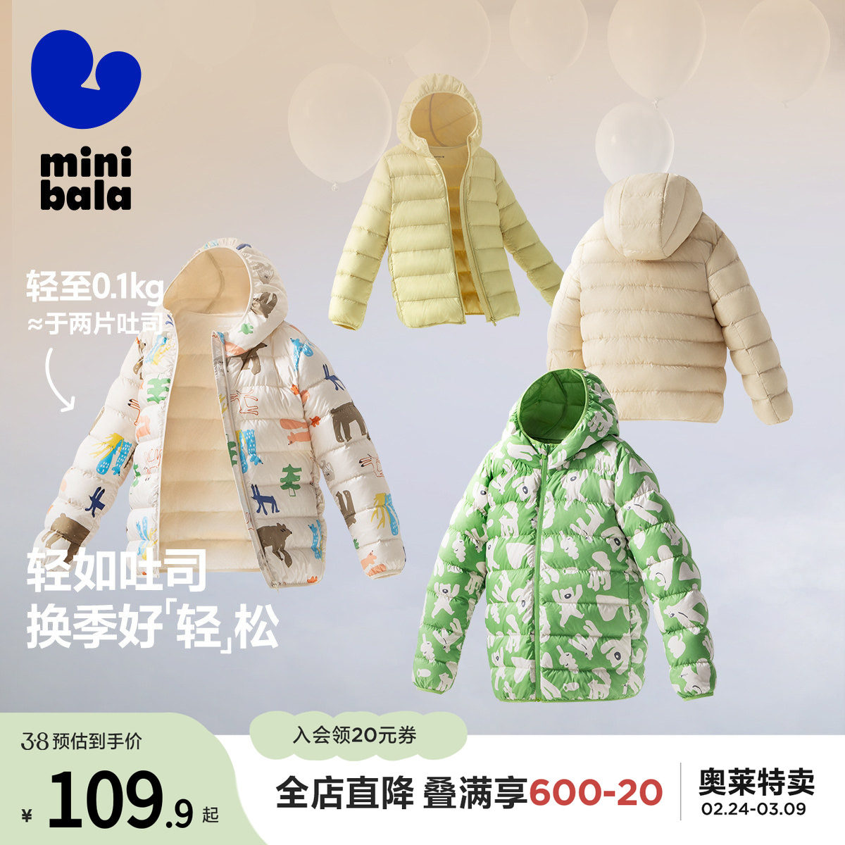 【三防】迷你巴拉巴拉男女童轻薄羽绒服冬季新款亲子保暖羽绒外套