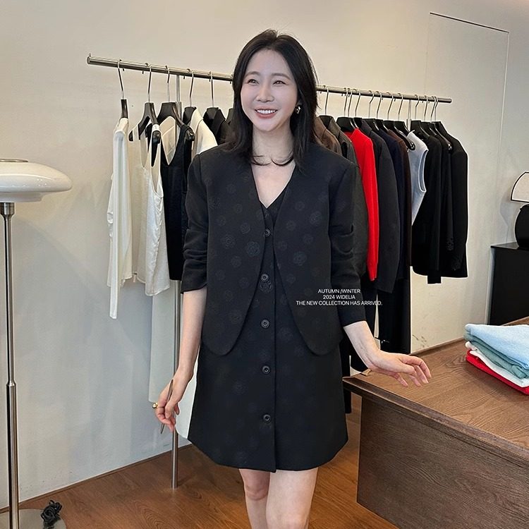 widelia陈姬儿秋冬名媛小香风马甲背心裙连衣裙西装外套套装9055