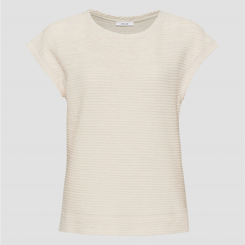外贸纯元单 德国100棉褶皱夏季女落肩袖圆领短袖T恤简约纯色舒适
