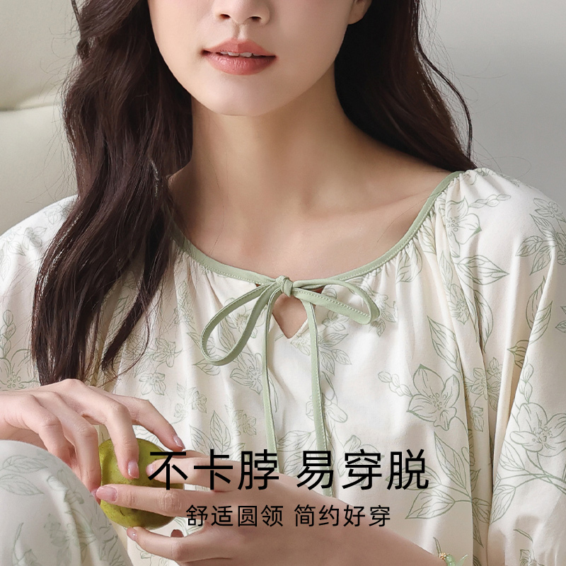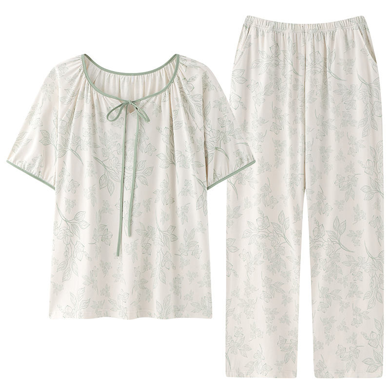 芬腾可安睡衣女款夏季莱赛尔棉短袖长裤2025新款碎花家居服两件套