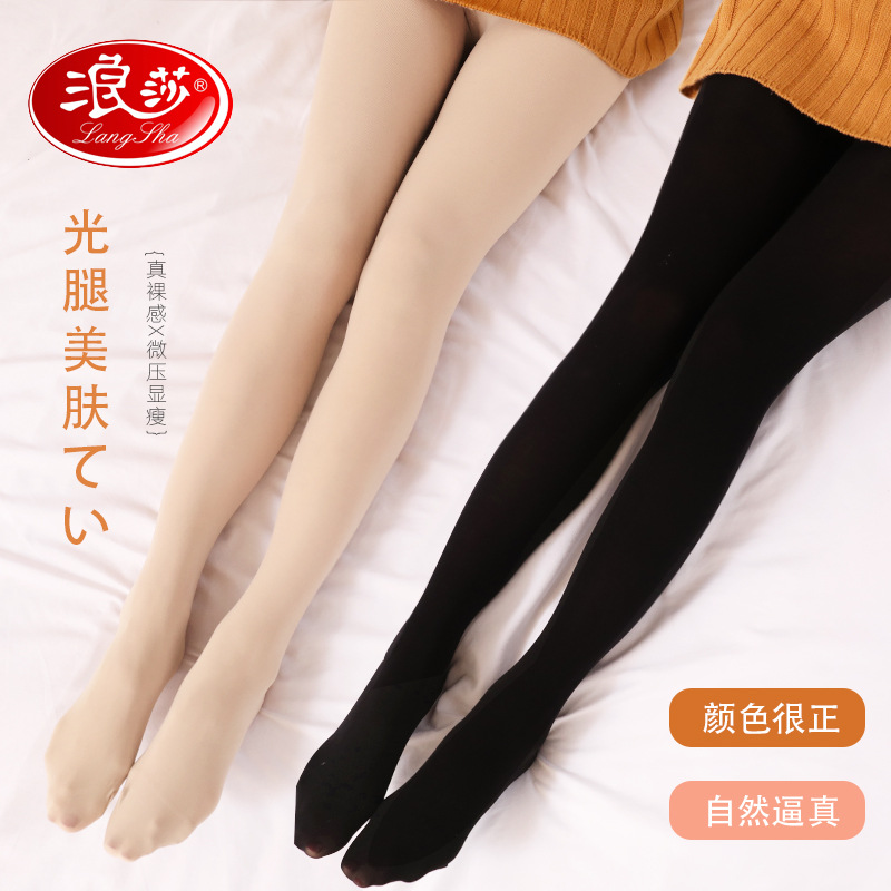 浪莎女士春秋连裤袜120d天鹅绒防勾丝肉色丝袜光腿神器水光打底袜