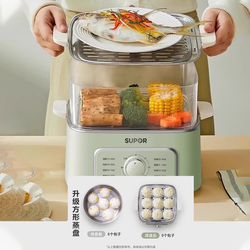 苏泊尔电蒸锅炖蒸煮一体小多层早餐蒸笼蒸箱家用三层多功能煮锅新
