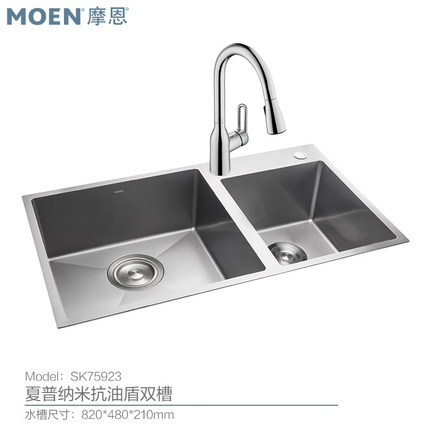 摩恩纳米双槽304不锈钢抗油水槽