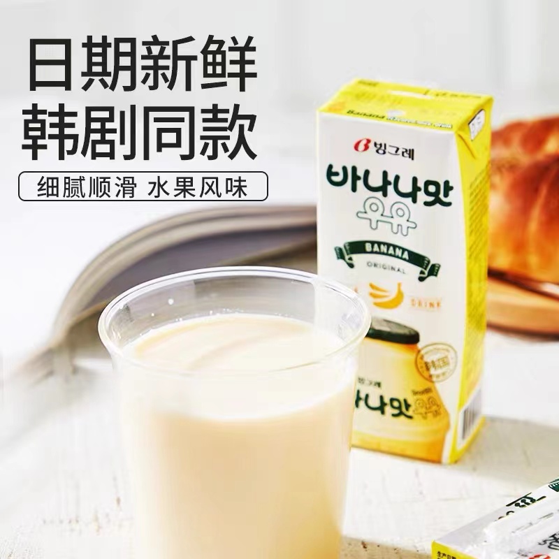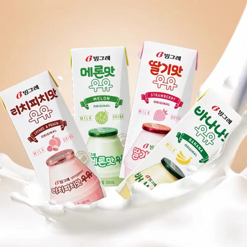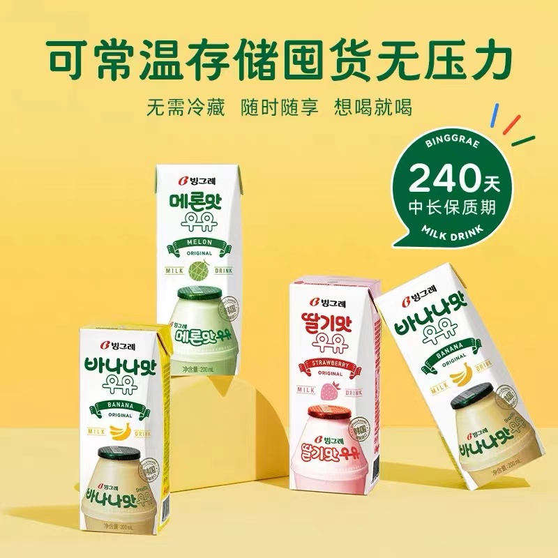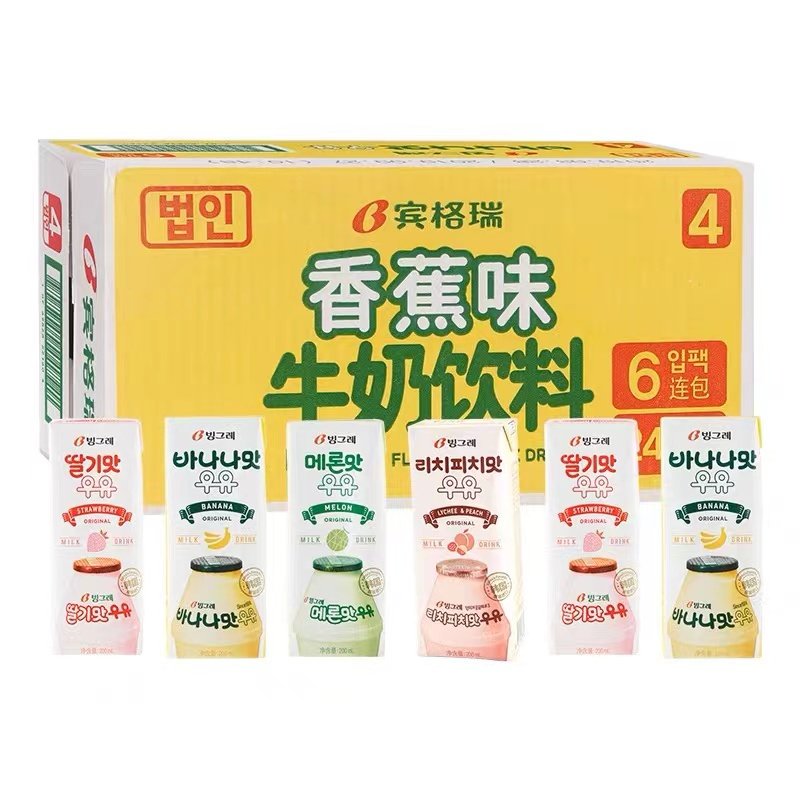 韩国进口宾格瑞香蕉牛奶草莓哈密瓜水果饮料味整箱儿童早餐饮品