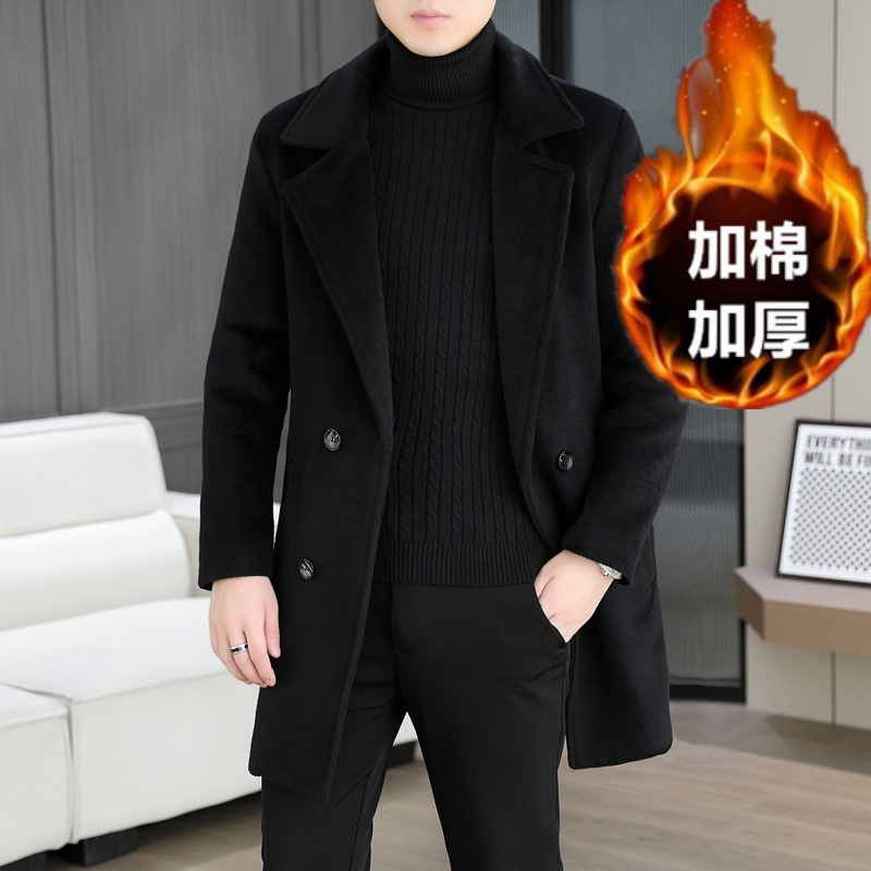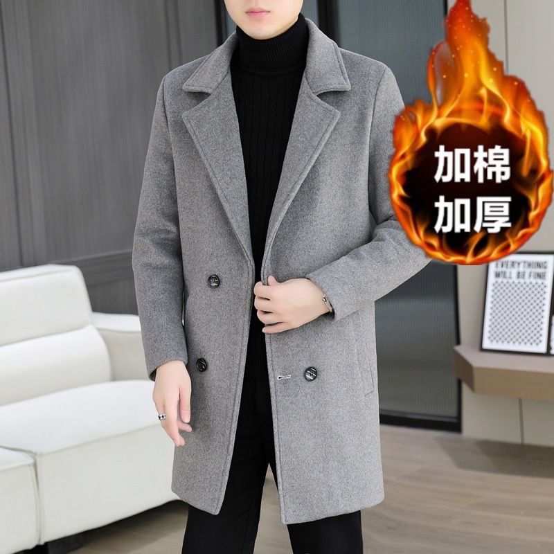 西装领毛呢大衣男士2025新款秋冬季加绒加厚中长款风衣呢子外套