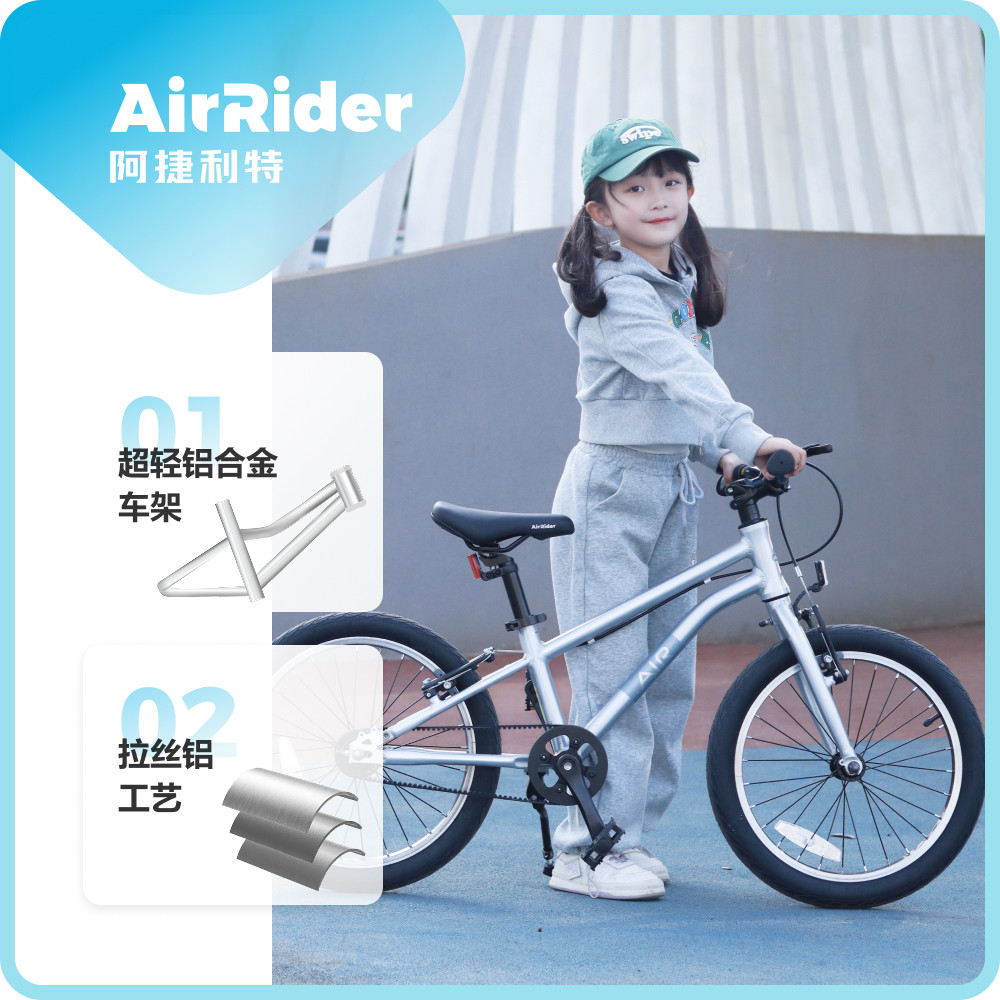 AirRider儿童自行车18寸铝合金中大童男女小孩皮带传动山地车超轻