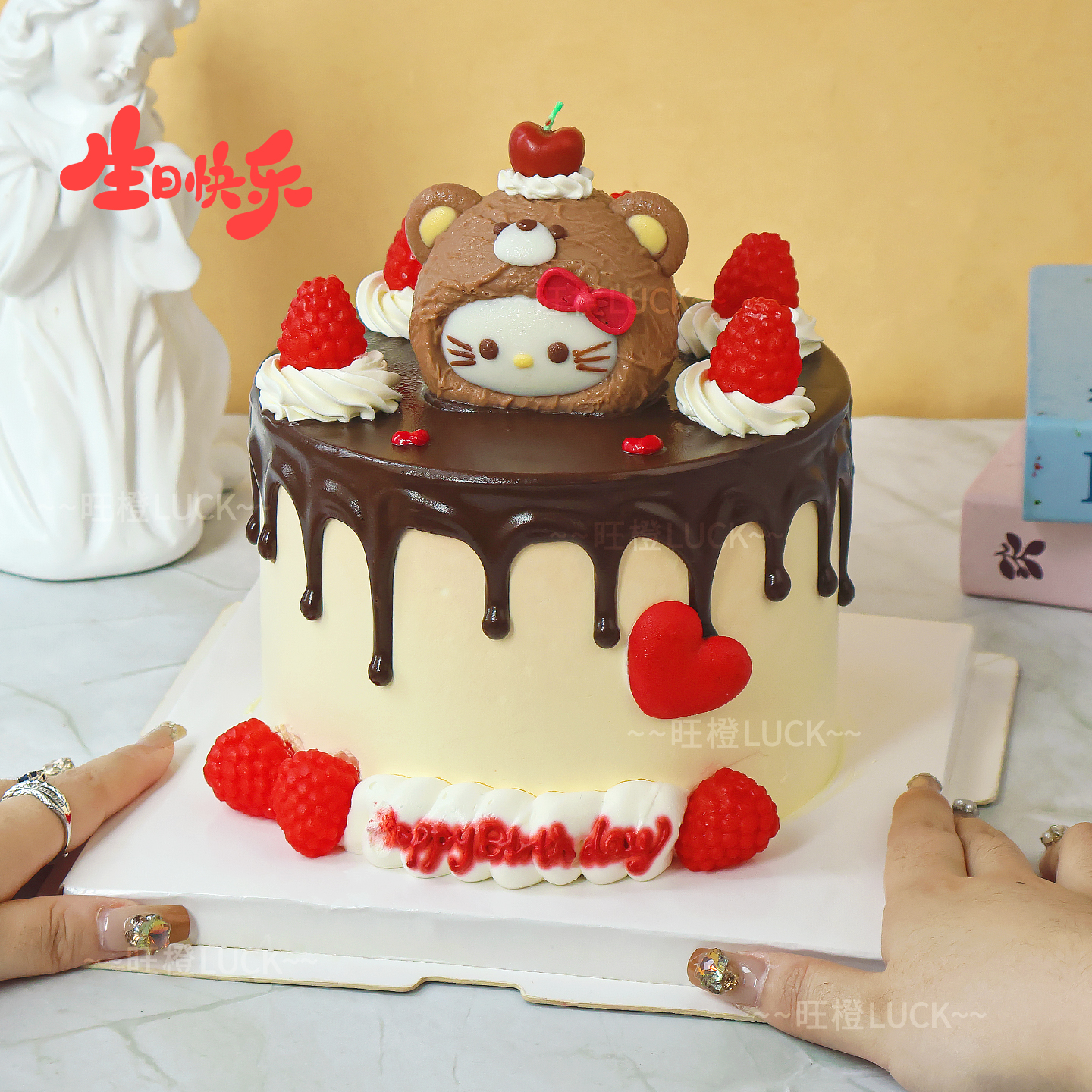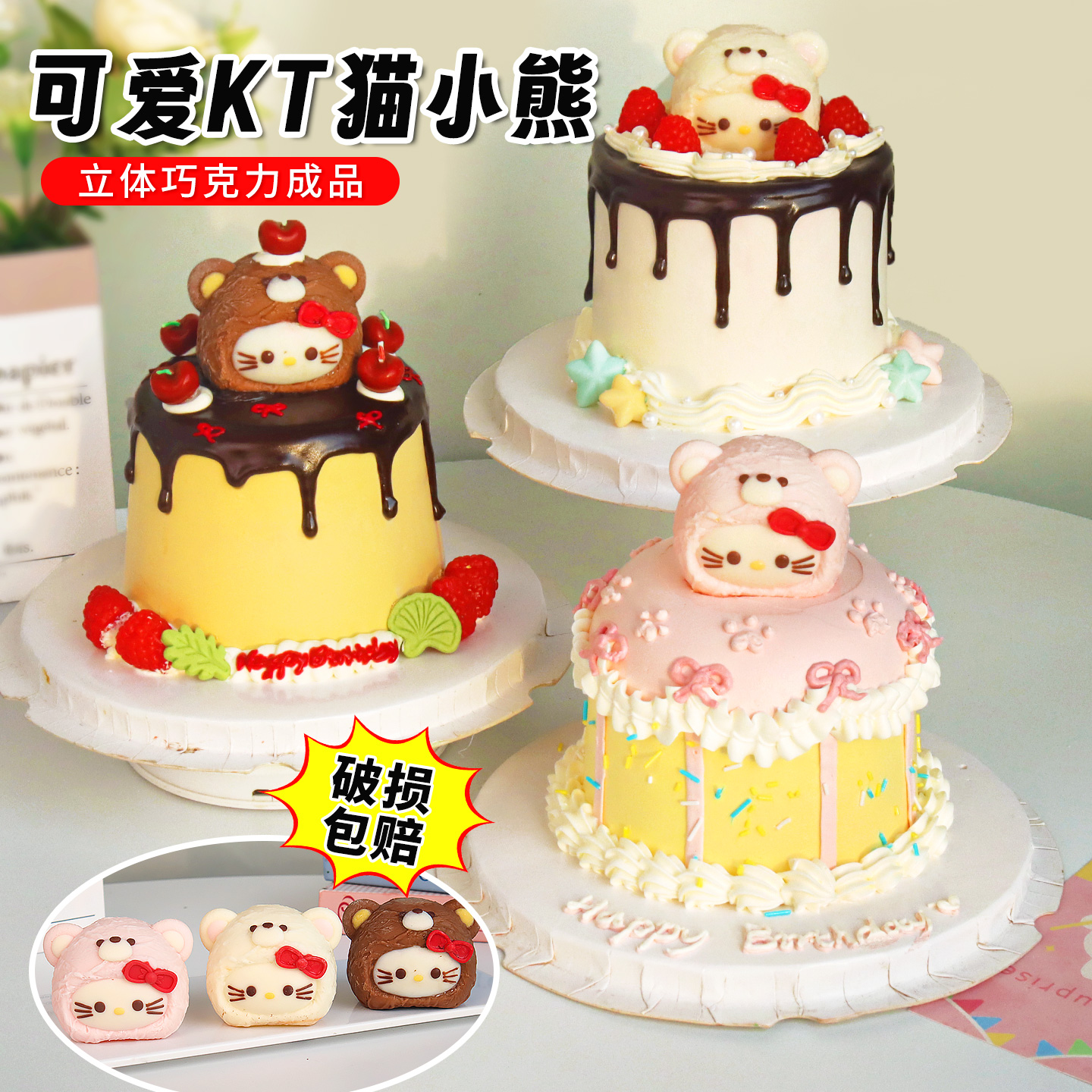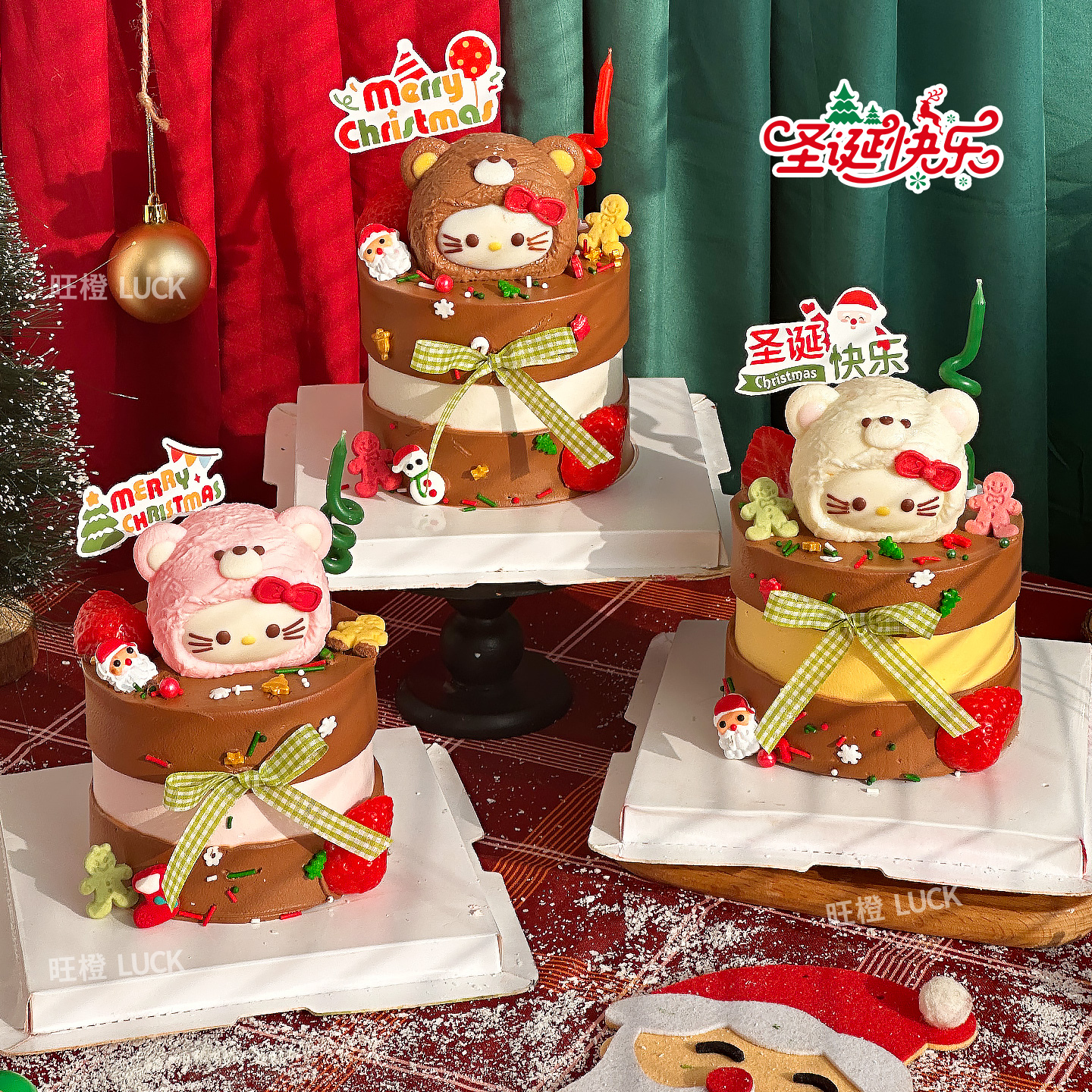 巧克力蛋糕装饰摆件卡通蝴蝶结小猫小熊新年圣诞树甜品台烘焙插件
