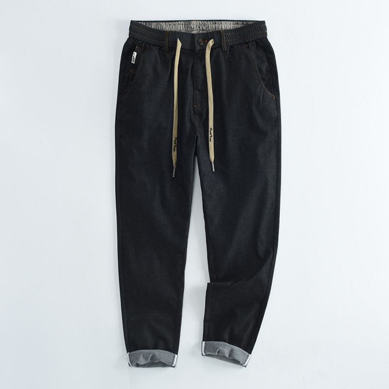 汉絮薄款麦穗斜纹牛仔裤子男士夏季百搭小锥裤休闲男装直筒九分裤