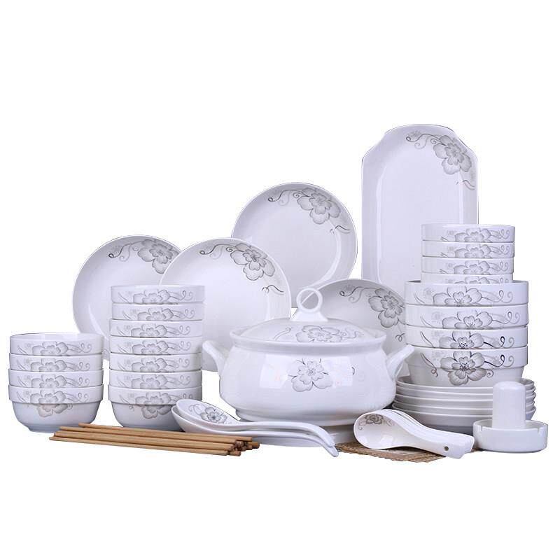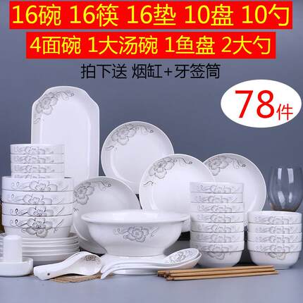 家用特价碗碟套装 78件盘子碗组合餐具 中式简约碗盘陶瓷器