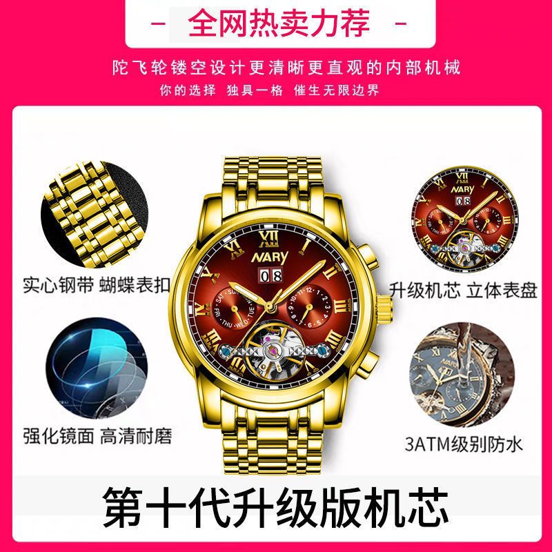 瑞士进口机芯全自动机械表男士手表男镂空多功能时尚男表夜光防水