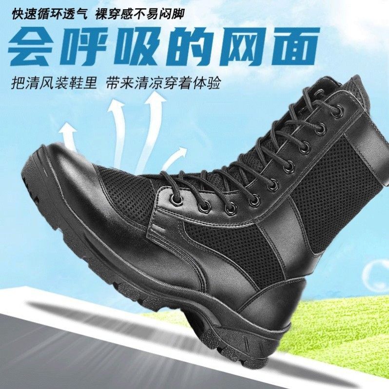 新式超轻作战靴透气夏季网眼高帮鞋拉链战术靴徒步靴军训靴保安鞋