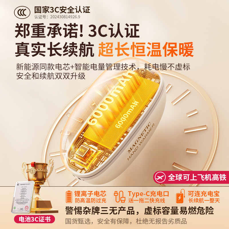 【3C认证】新款磁吸二合一分体式暖手宝双手握式迷你随身携带防爆自发热暖手神器usb充电款女生便携礼物电竞