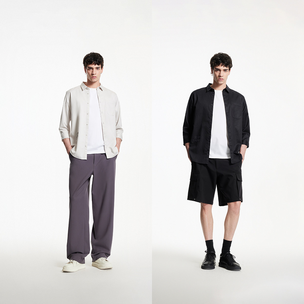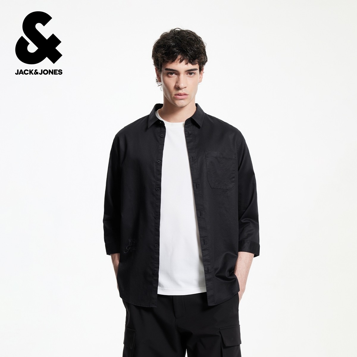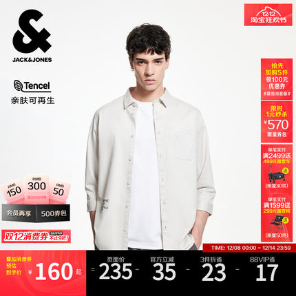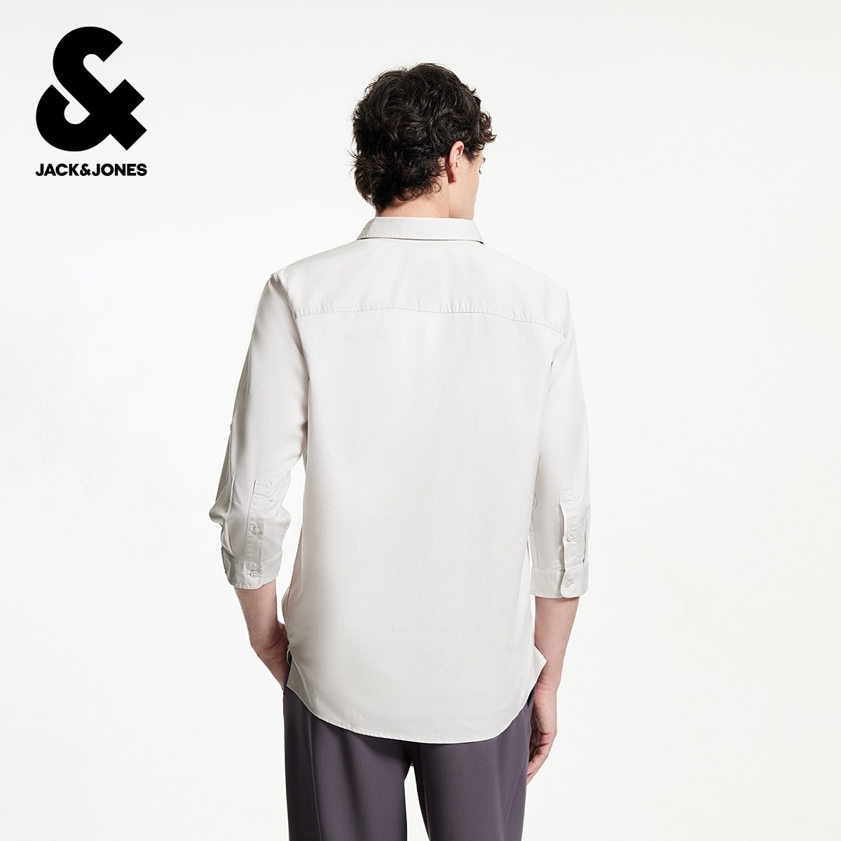 杰克琼斯秋季新款衬衣常规版型含天丝休闲可调节袖长翻领衬衫男装