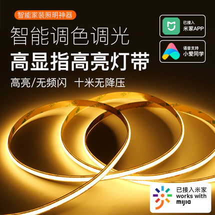 已接入米家智能cob灯带变三色语音无极调光客厅悬浮双眼皮线形灯