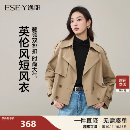 逸阳短款女士风衣2025秋季新款英伦风气质翻领通勤休闲小个子外套