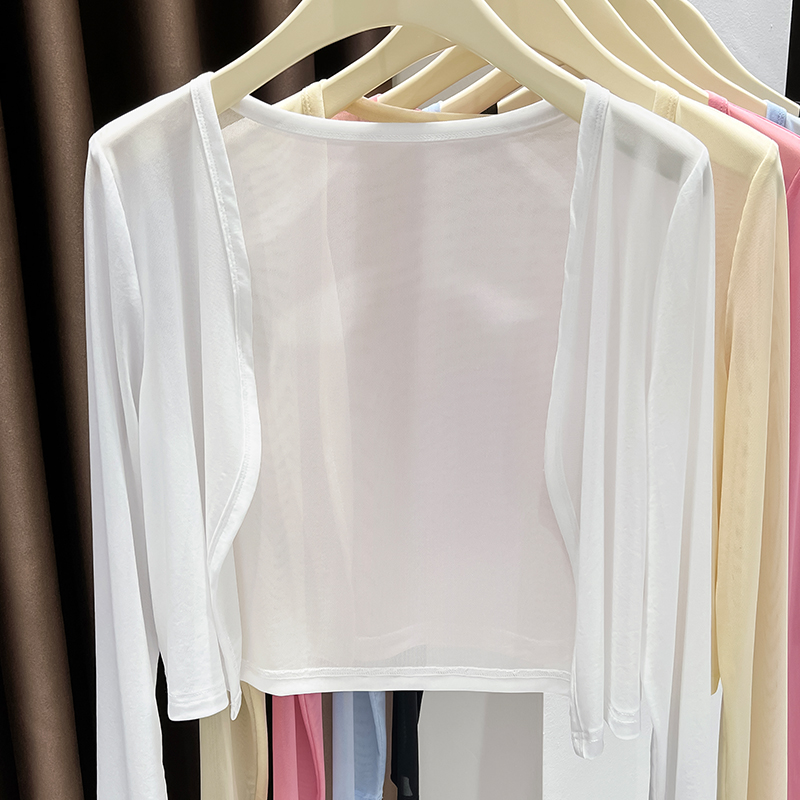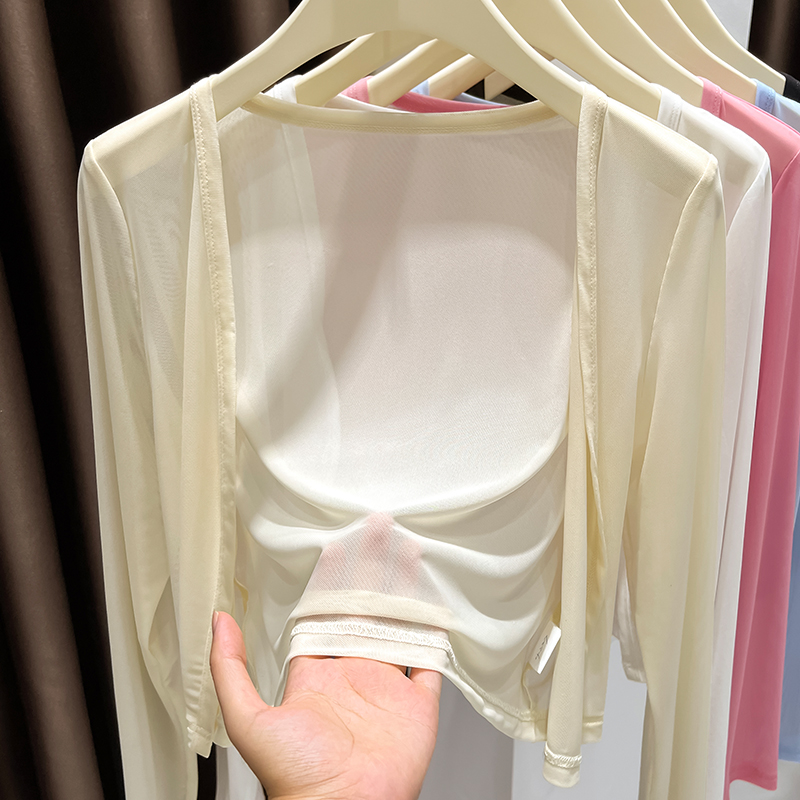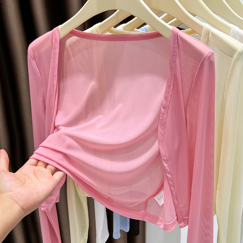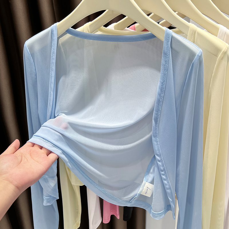 黑色冰丝网纱防晒开衫女夏薄款配吊带裙外搭披肩上衣透视蕾丝小衫